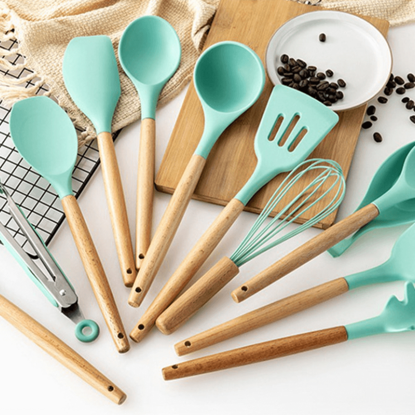 Minden egyben és szépen együtt? Kinek ne tetszene ez? A 12 darabos konyhai tálalókészletünkről van szó! Professzionális készlet, mely szilikonból készült, és természetes színű fa fogantyúval egészül ki. Ezt az anyagot minden felhasználó értékelni fogja, mivel nem ragad rá az étel, hőálló, biztonságos és könnyen tisztítható. Így örömmel és könnyedén készíthet ételeket a szeretteinek és barátainak. Ezenkívül a készlet mosogatógépben is mosható. Szerezze be a konyhai eszközkészletünket, amelyre valóban szüksége lesz a konyhában.