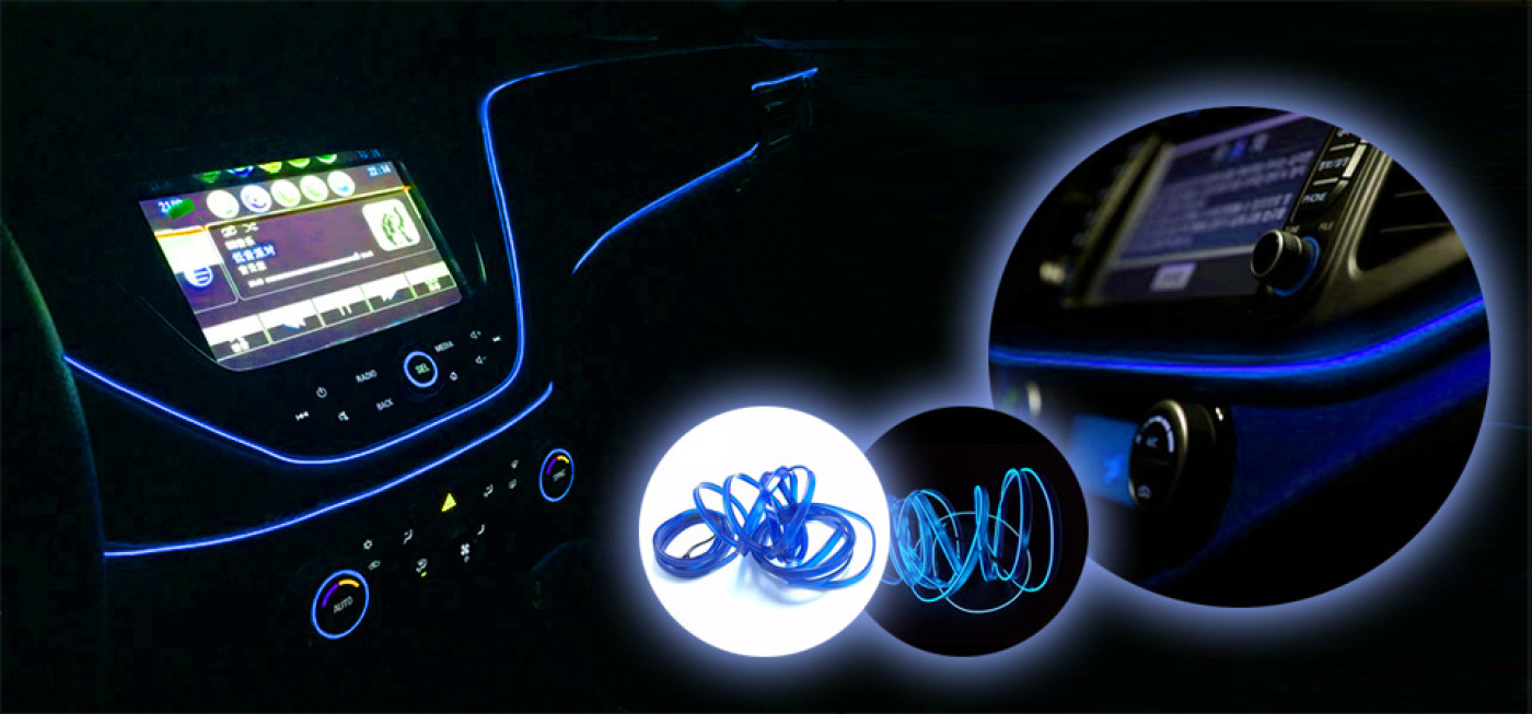 Rugalmas és könnyű: A neon fény könnyen alkalmazkodik az autó műszerfalának formájához és tetszés szerint vágható.