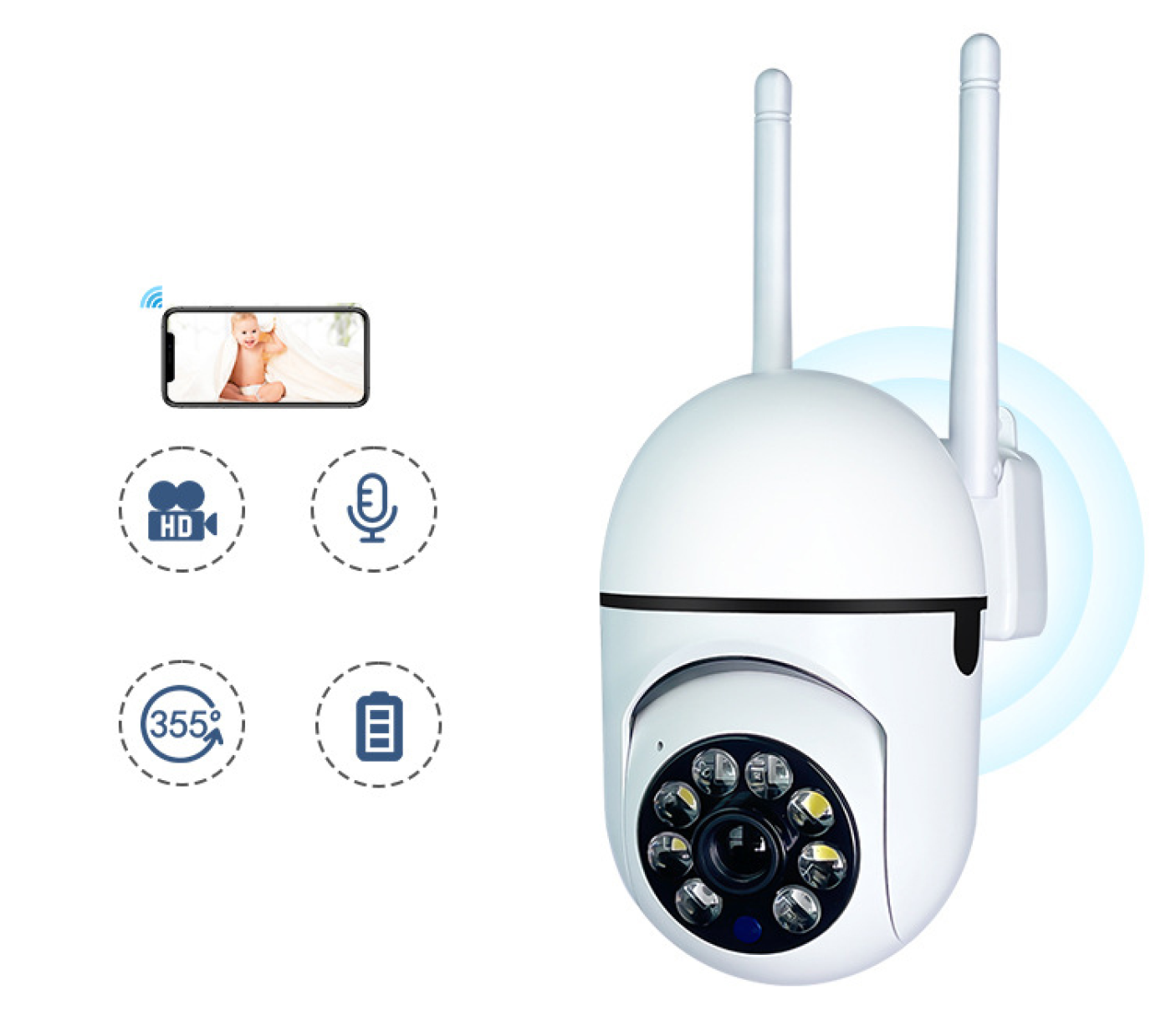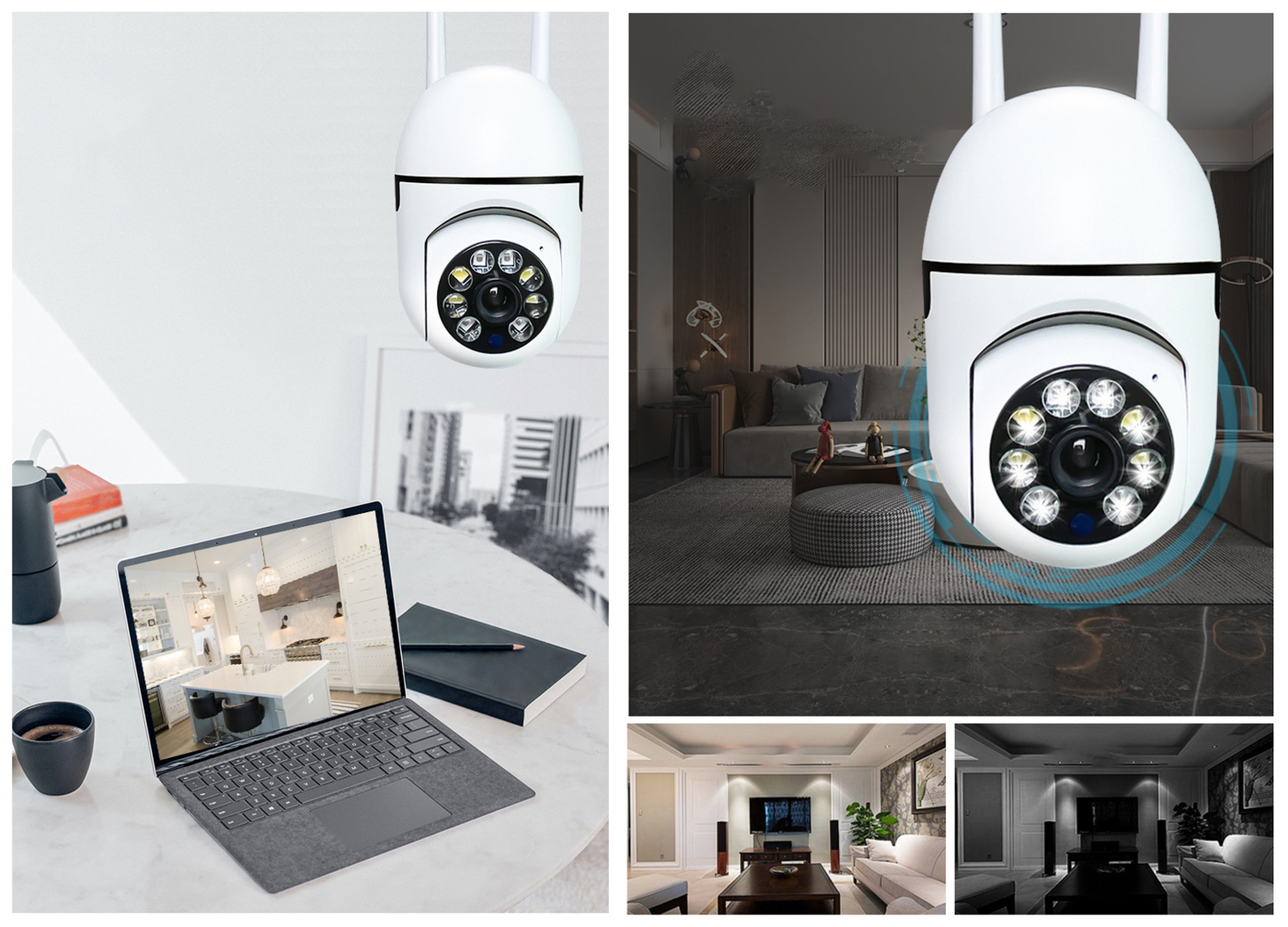 A kamera továbbá támogatja a TF kártyák használatát(nem tartozék), így helyet biztosít a videofelvételek tárolására. A 360 fokos vízszintes és 90 fokos függőleges forgatási képességek lehetővé teszik, hogy a kamerát szabadon igazíthassa a legoptimálisabb nézőpont eléréséhez.