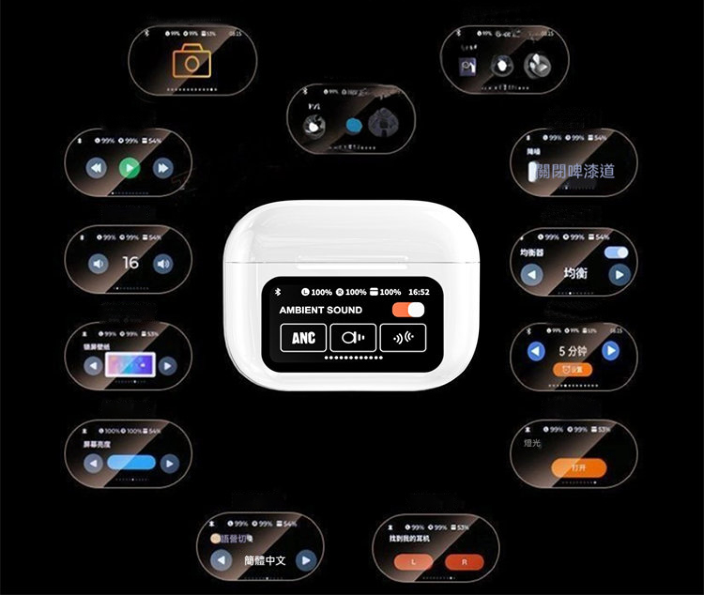A fülhallgató tokján egy 0,78 hüvelyk x 1,37 hüvelyk méretű, esztétikus és hűvös színű okos érintőképernyő található, amelyet arra terveztek, hogy intelligens vezérlést biztosítson mind a telefon, mind a fülhallgató funkciói felett.