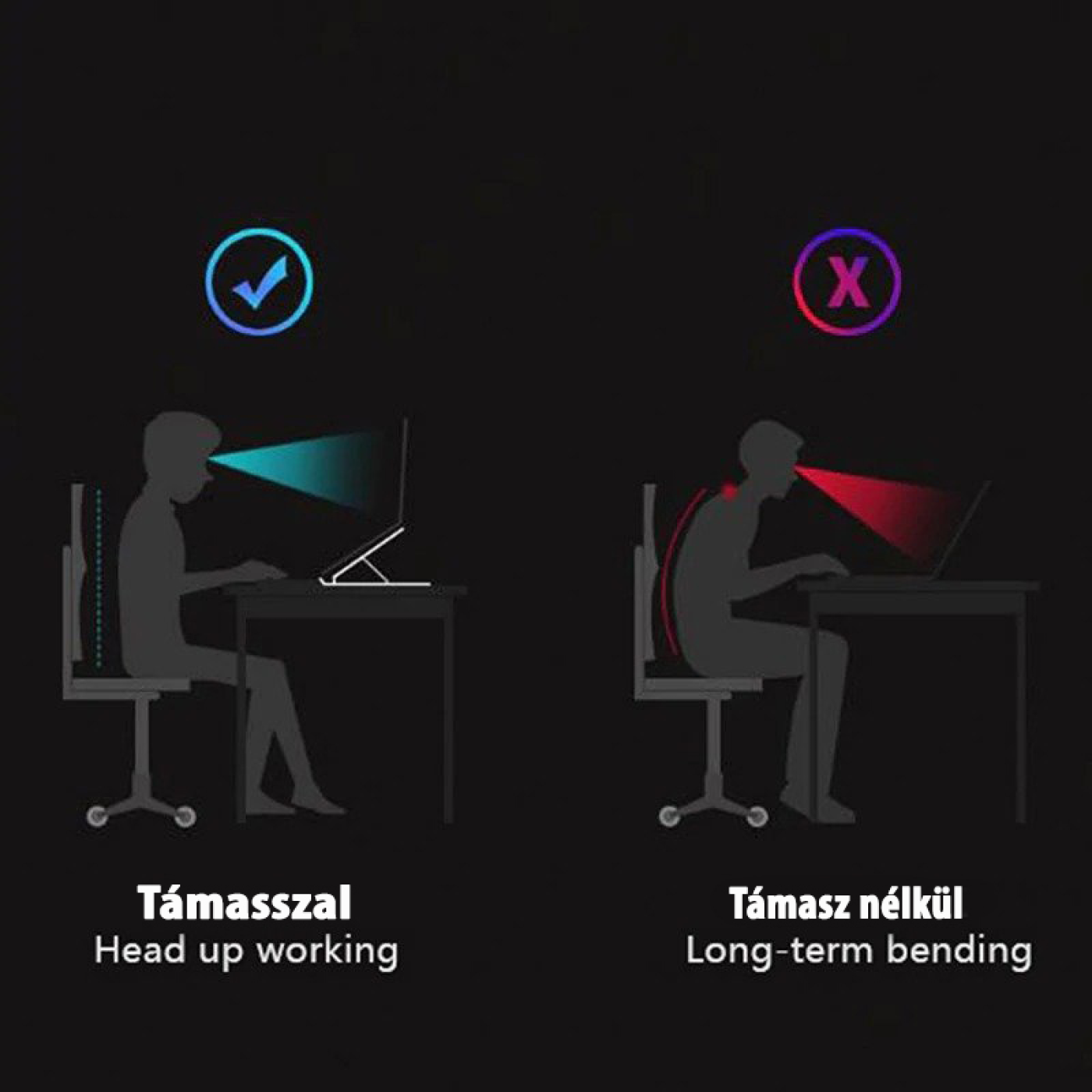Ez lehetővé teszi, hogy a készüléket különböző szögekben emelje meg, ami javított ergonómiát és egészséges helyzet megőrzését jelenti, amikor laptopon dolgozik.