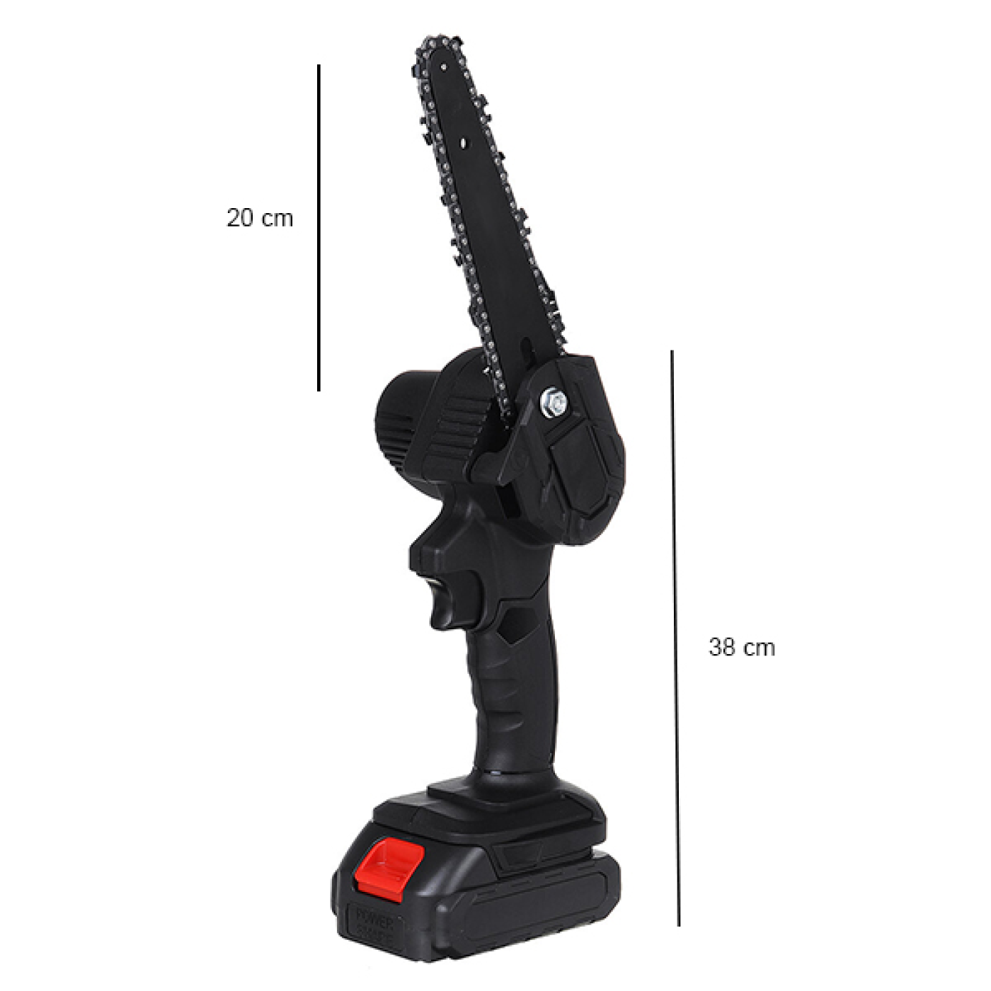 Az elektromos fűrész 4000 mAh-s akkumulátorral rendelkezik, így teljes feltöltés után hosszú ideig használható. A fűrész tömege 2 kg, teljes hossza pedig 38 cm. Ideális ágak kivágásához és fák metszéséhez.