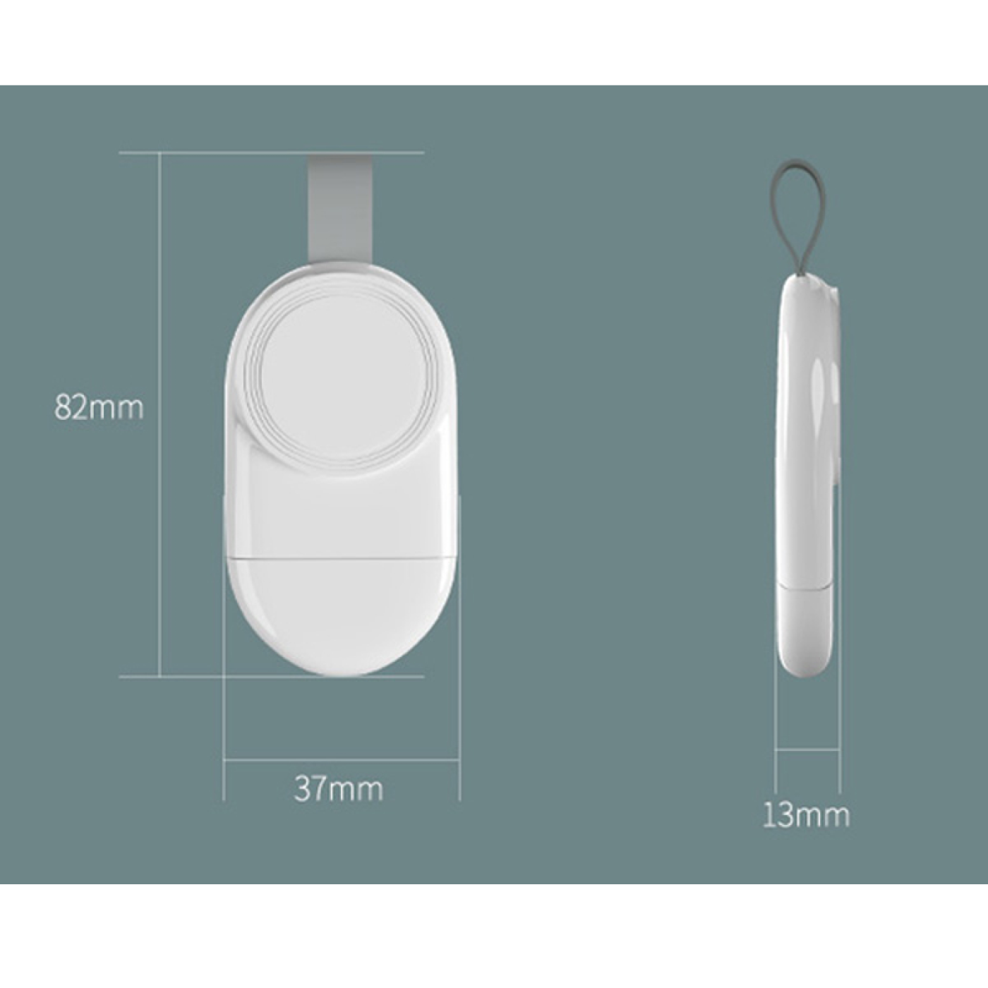 Amikor utazol, nincs szükség arra, hogy az órád a hálózatra legyen kötve, csak csatlakoztasd egy külső akkumulátorhoz (power bank), és máris töltheted. Az anyaga sima és texturált. A töltő maximális kimeneti teljesítménye 2W, így gyors töltést biztosít. A töltés során az eszköz nem lesz meleg, köszönhetően az ABS + PC háznak, amely kiváló hőelvezetéssel rendelkezik. Így a hosszú távú töltés során sem melegszik fel. Mágneses rögzítési módszerrel rendelkezik, így az órát egyszerűen csak rá kell helyezni, és máris tölt. A töltőn egy zsinór (lanyard) is található, így könnyen hordozható és kompakt kialakítású.