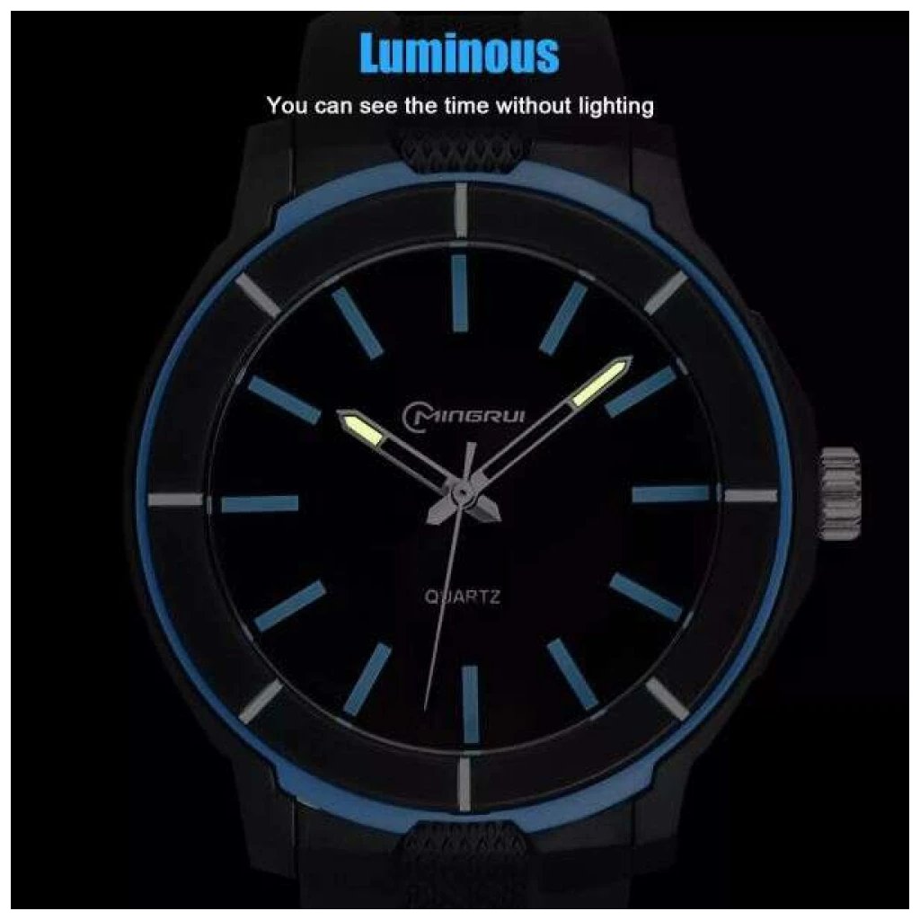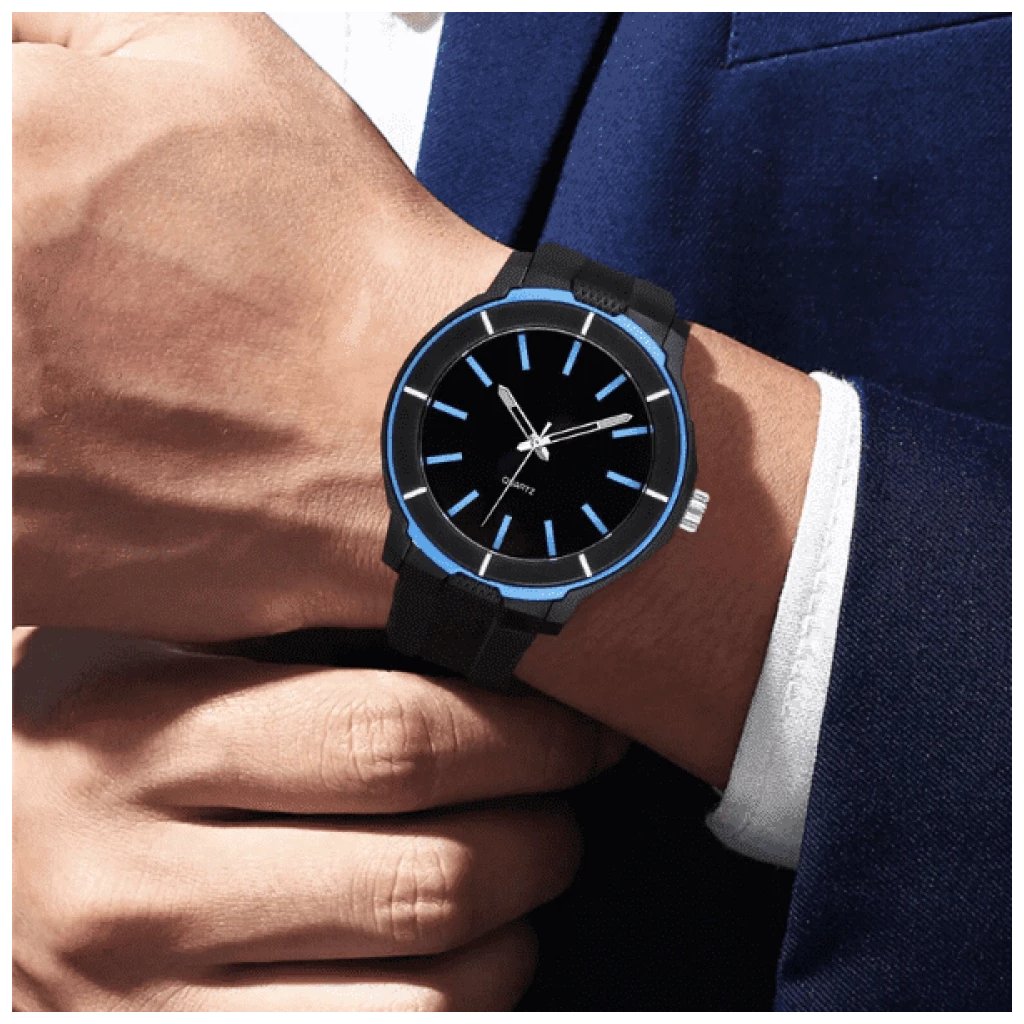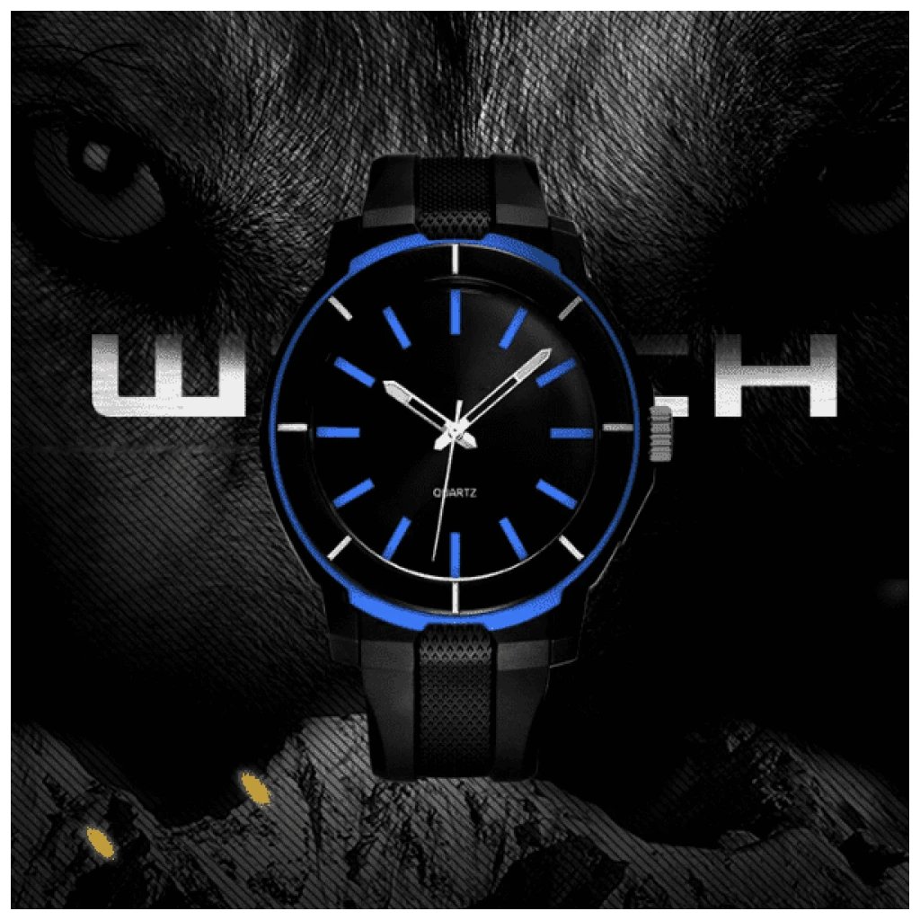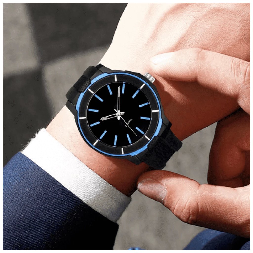 férfi óra, modern óra, világító mutató, kék óraszíj, sportos óra, vízálló óra, analóg óra, elegáns óra, kényelmes szíj, divat kiegészítő