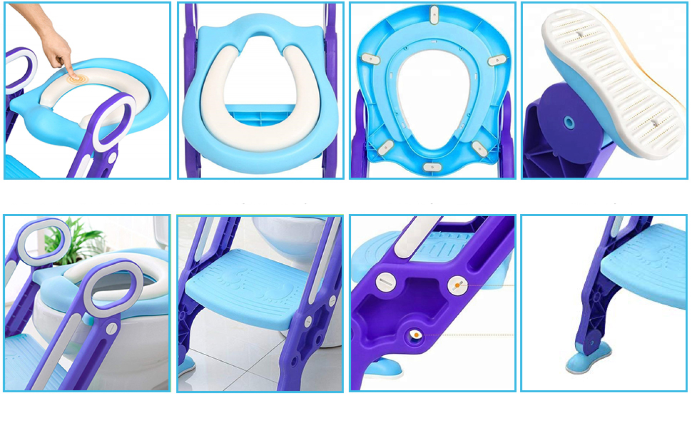 4. Összecsukható kivitel: Helytakarékos, összecsukható és könnyen tisztítható. Bamny gyerek WC-ülőke lépcsővel minden sarokban elhelyezhető.