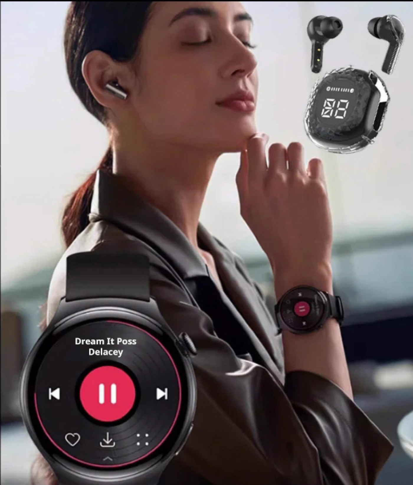 A csomag egy pár vezeték nélküli Bluetooth fülhallgatót is tartalmaz, amely kiváló hangminőséget és kényelmes használatot biztosít akár zenehallgatáshoz, akár telefonhívásokhoz. A fülhallgatók stílusos töltőtokban kapnak helyet, amely beépített kijelzővel is rendelkezik, így mindig nyomon követhető a töltöttségi szintjük.