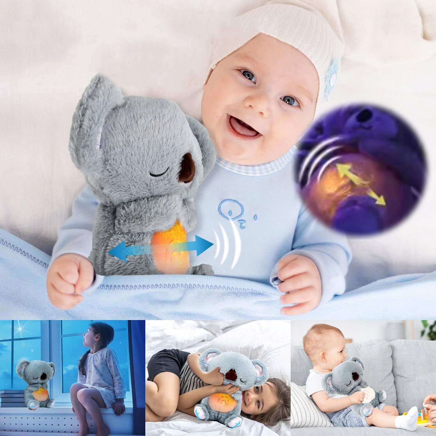 DreamyKoala™ – Prémium Pihe-Puha Altatójáték Fénnyel, Légzőmozgással és Éjszakai Zenével (0+)