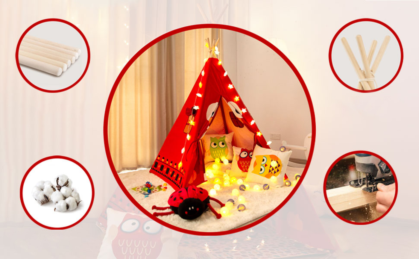 Kiváló minőségű anyagok és ésszerű méret: a gyerekszoba teepee természetes és biztonságos pamut anyagból készül, tartós, levehető, gépben vagy kézzel mosható. A sátor rudja erős fenyőfából készül, szabad a vegyi szagtól és káros anyagoktól, és szellőző ablakokkal van felszerelve, így a szülők bármikor láthatják a gyerekeket a sátorban.