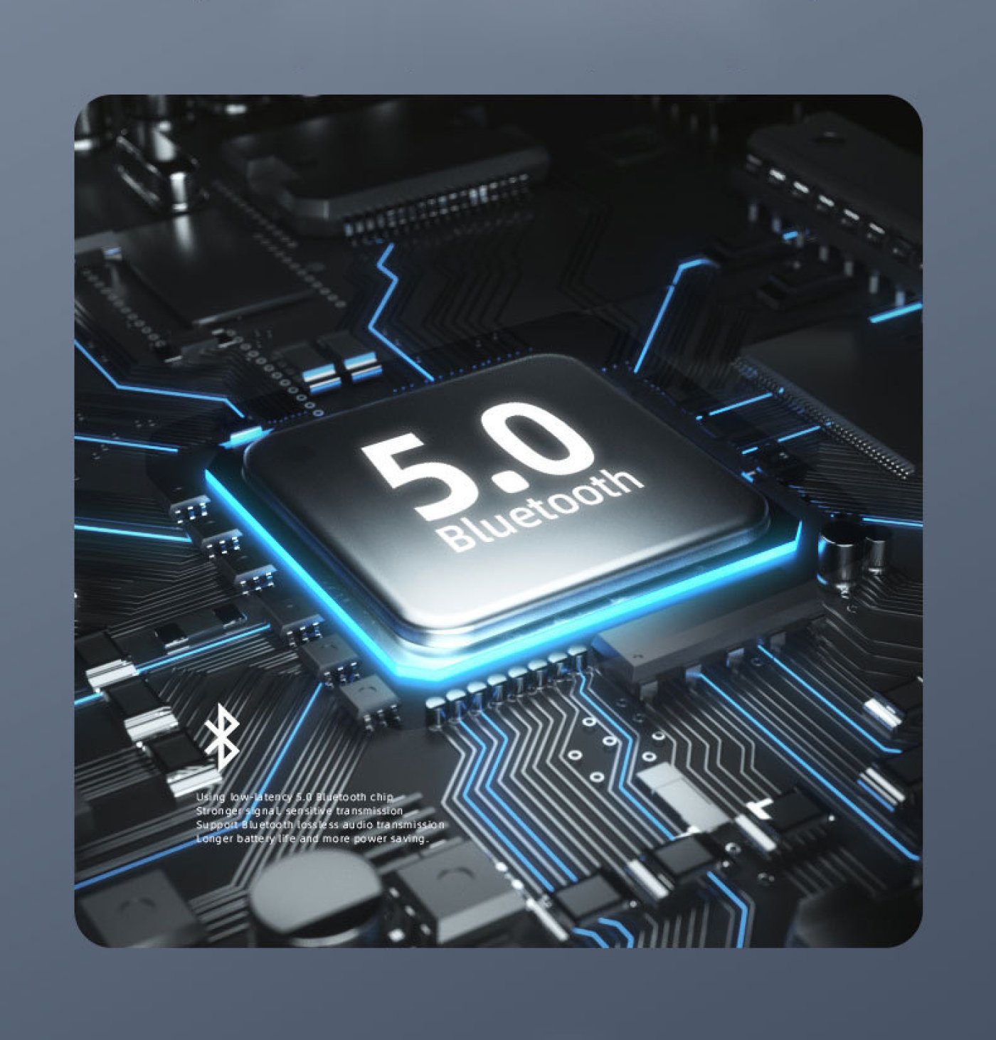 Az alacsony késleltetésű 5.0 Bluetooth chip használatával a jel erősebb és az átvitel érzékenyebb.