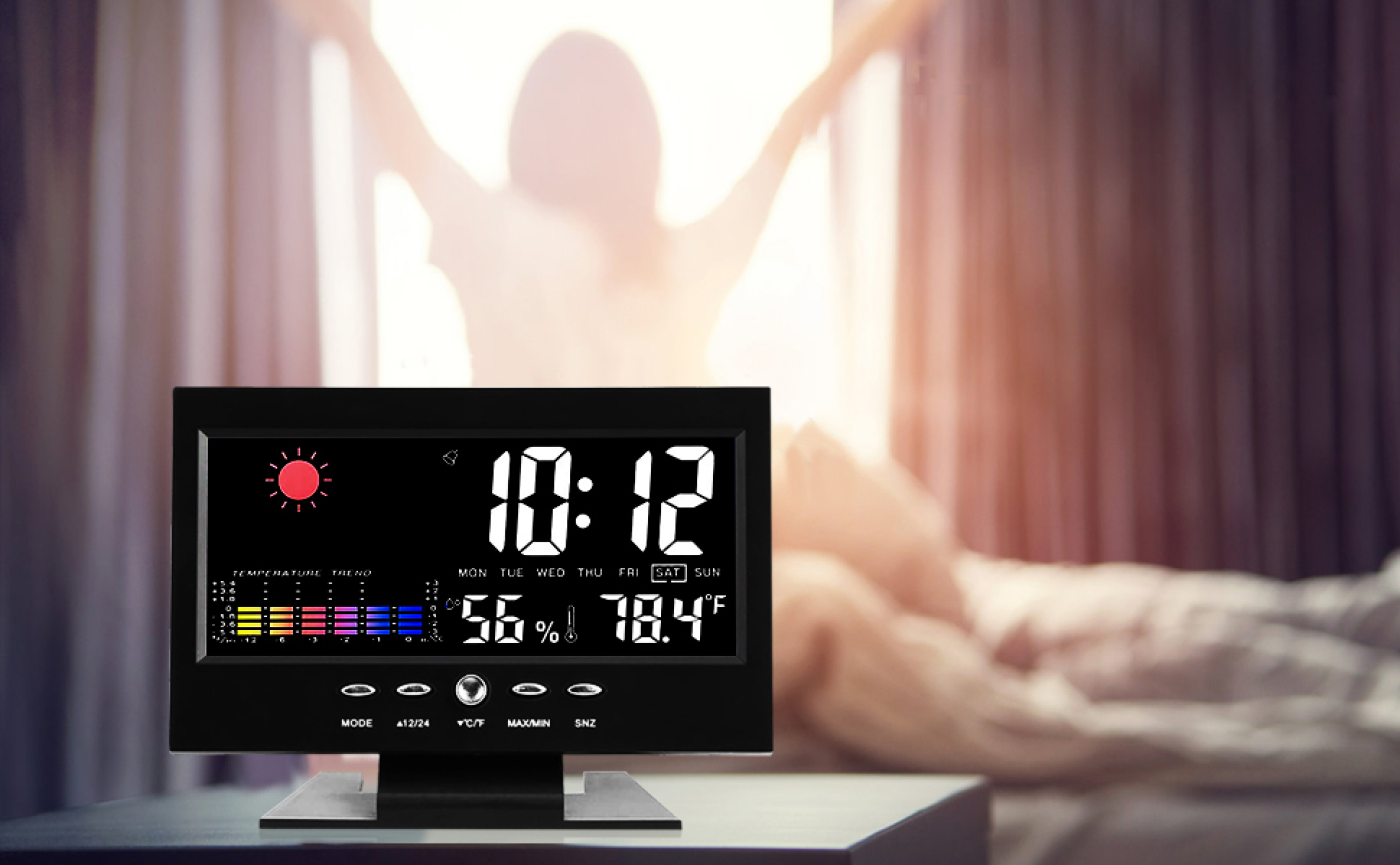 Ez a meteorológiai állomás nem csak hogy színes kijelzővel rendelkezik, de számos más hasznos funkcióval is felszerelt. Tökéletes választás azoknak, akik szeretnék naprakészen követni az időjárási viszonyokat. Az örök naptár gondoskodik róla, hogy mindig tudjuk, milyen nap van, míg a háttérvilágításos digitális kijelző lehetővé teszi az időjárás-előrejelzés könnyű leolvasását. Továbbá, a készülékkel egyszerűen ellenőrizhetjük a hőmérsékletet és a páratartalmat is. Hangvezérlési funkciója és háttérvilágítása mellett beépített ébresztőóraként is használható, melynek ébresztési és szundi funkciója is van. Ideális választás minden otthonba és irodába.