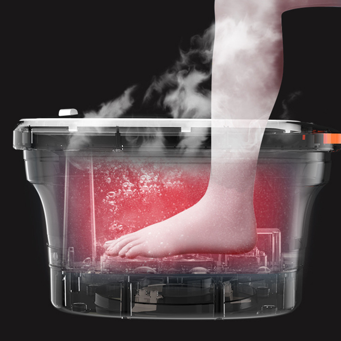 A görgőkkel és infravörös fénnyel ellátott lábfürdő masszírozó hatékonyan stimulálja a lábak akupresszúrás pontjait, kényelmes lábmasszázs élményt nyújtva.