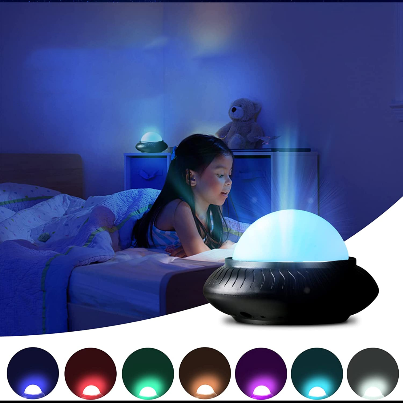 Az éjszakai lámpa 7 különböző nyugtató színben kapható az alvás elősegítésére. Teljesítheti a meleg éjszakai fény és a szenvedélyes diszkófény tökéletes kombinációját.