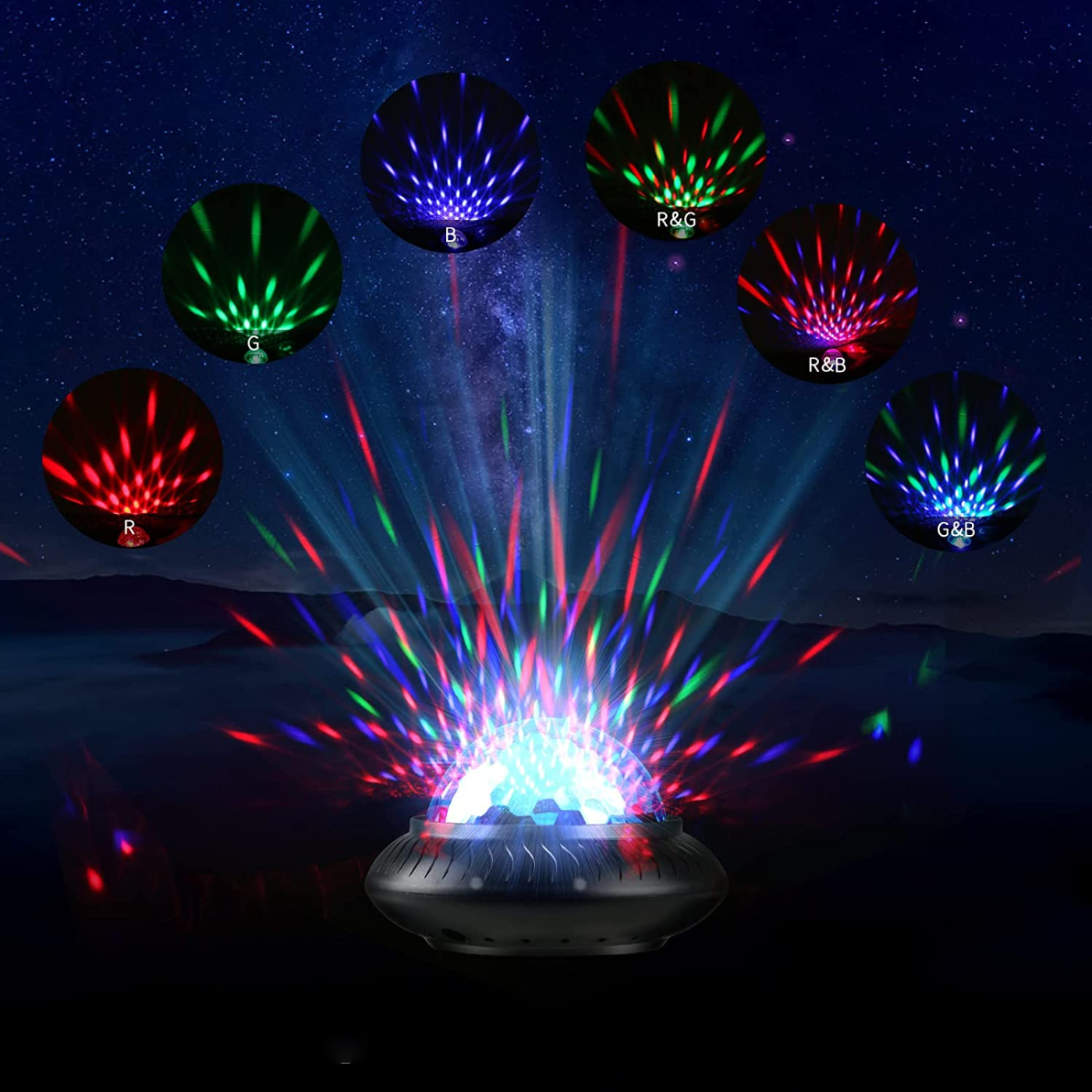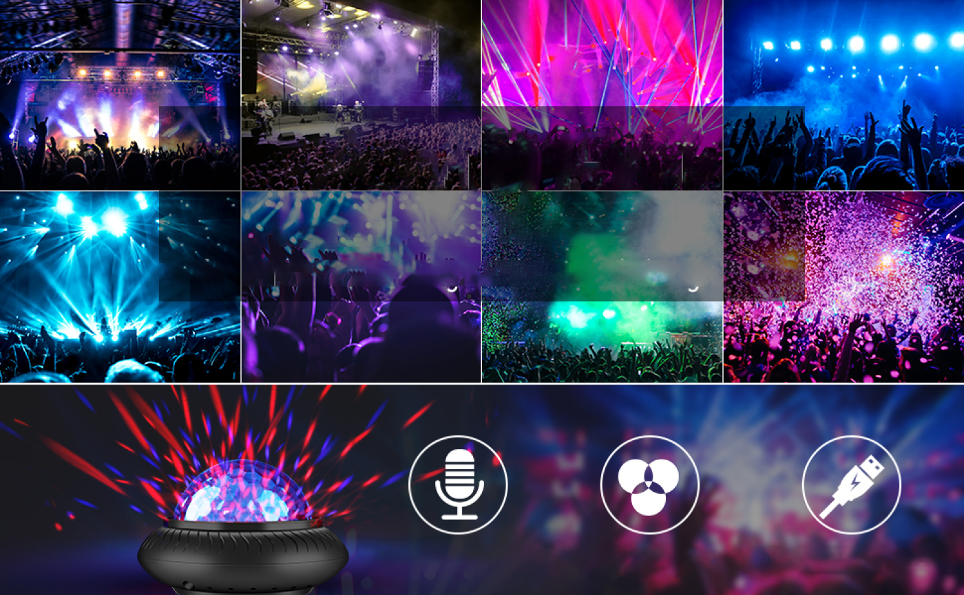 2 az 1-ben bulilámpa és éjszakai fény: Csak egy lámpaernyő képes teljessé tenni a meleg éjszakai fény és a szenvedélyes diszkófény tökéletes kombinációját, nem csak vidám bulihangulatot, hanem kellemes alvási légkört is teremthet.