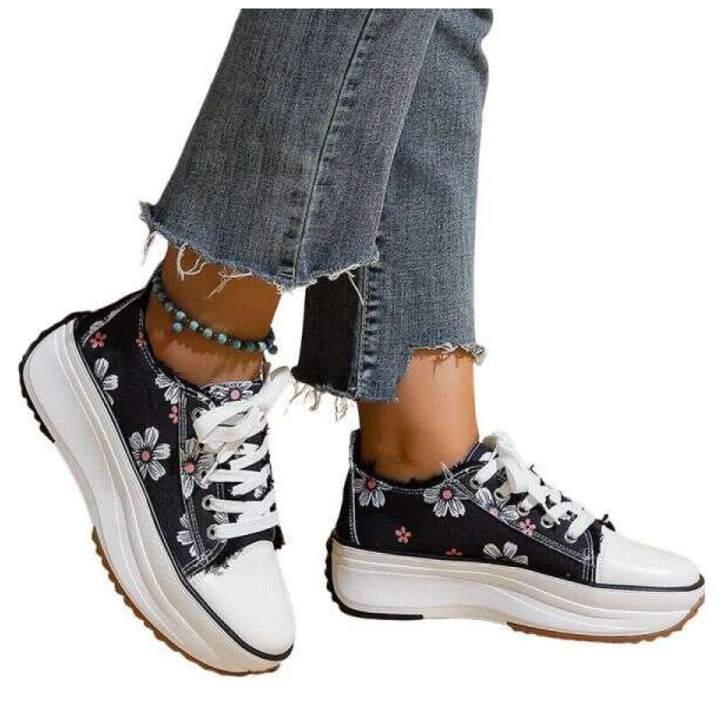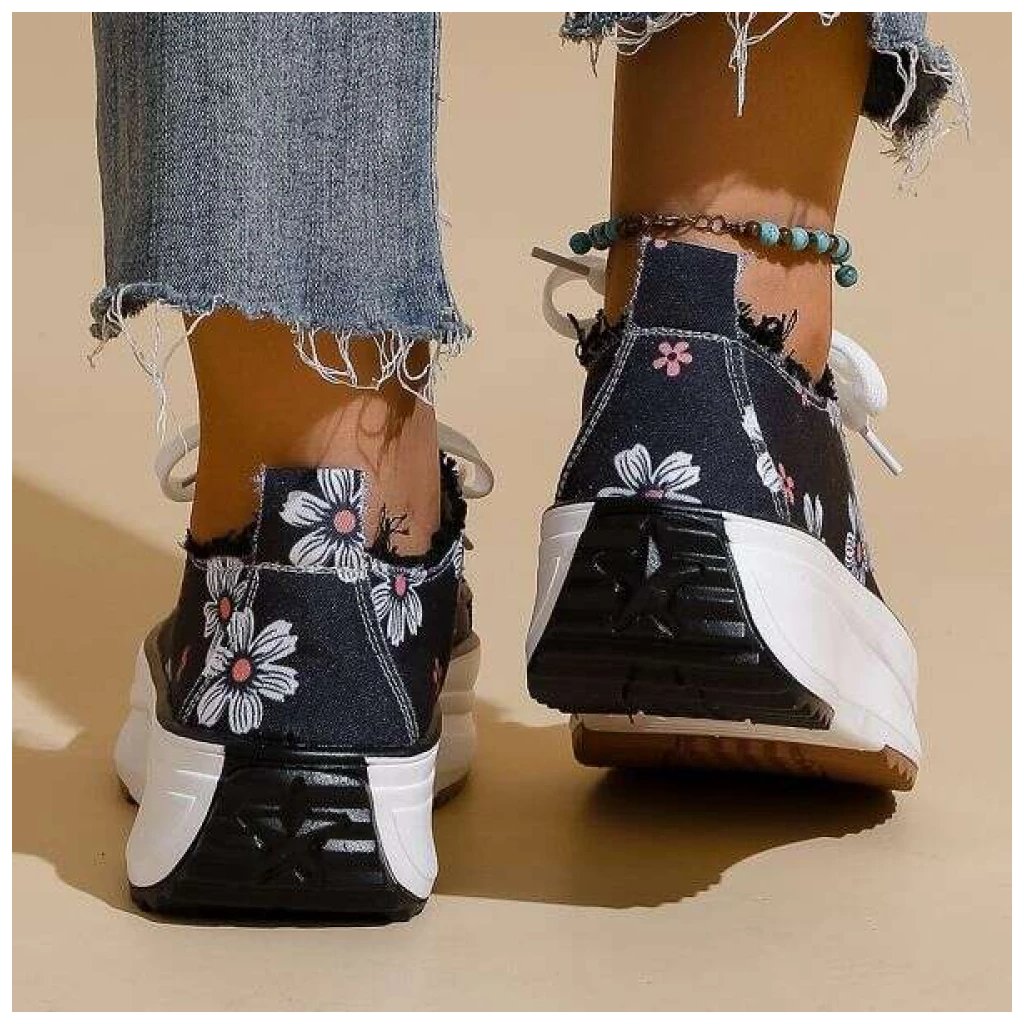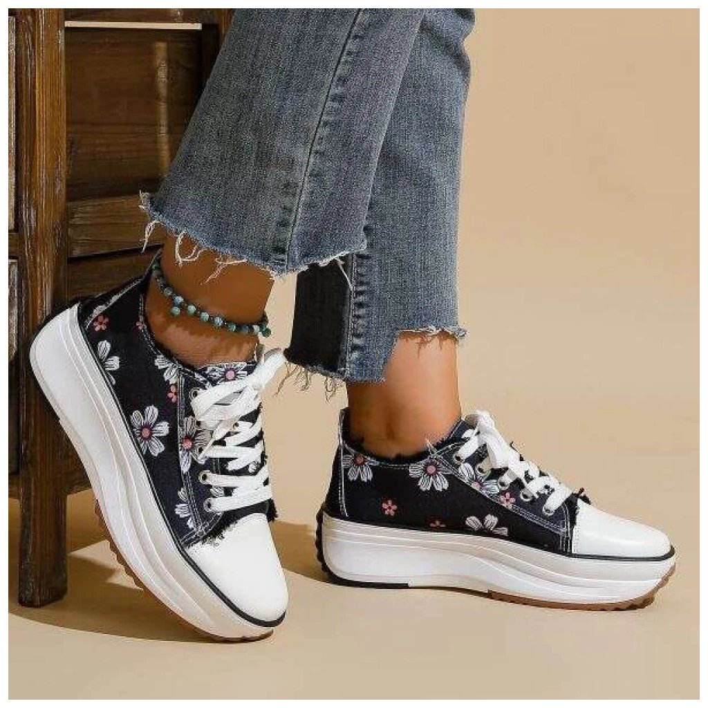 Modern platform tornacipők Jolene. Készüljön fel arra, hogy megtapasztalja a divat és a funkcionalitás tökéletes keverékét. A tornacipőket úgy tervezték, hogy szilárdan a talajon maradjon, bárhová is mész.. Érezze a kényelmet minden lépésében. Hihetetlenül tartós még a legnagyobb kihívást jelentő tevékenységek során is. Tapasztalja meg a stílus és a kényelem tökéletes ötvözetét élvonalbeli platformos tornacipőinkkel. Különféle tevékenységekhez megfelelő lábbeli. Akár a város utcáin sétál, akár fut, hogy elérje a buszt, vagy munkába induljon, stabilan és biztonságban lesz velük.. Tehermentes láb egész nap. Úgy tervezték, hogy masszívak legyenek, de könnyűek, mint a toll. A végső cél az, hogy a lábak kényelmetlenség nélkül érezzék magukat – reggeltől estig!. Okosan kialakított talp. Segítenek megőrizni az egyensúlyt minden lépésnél! A stabil, vastag platform lehetővé teszi a gyors, csúszásmentes gyaloglást még egyenetlen, csúszós terepen is.. Kiváló minőségű anyagok. Kizárólag a legjobb anyagok felhasználásával készült cipők tartósságot és ellenálló képességet ígérnek.. Anyagok: Felső - vászon; bélés - pamut; talpbetét - PU; talp - gumi. Méretek: 37, 38, 39, 40, 41. Szín: fekete-fehér virágokkal.Specifikációk:- Leírás: Jolene aranyos és kényelmes cipők. A tornacipőket a kényelem szem előtt tartásával tervezték, és különféle ruházattal párosíthatók. Megemelt talpuk van, ami megkönnyíti a járást. Fekete színben kaphatók.