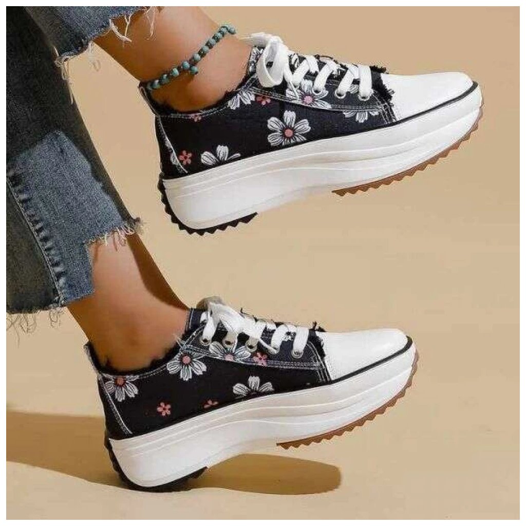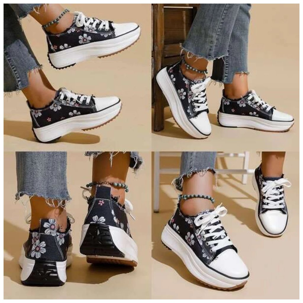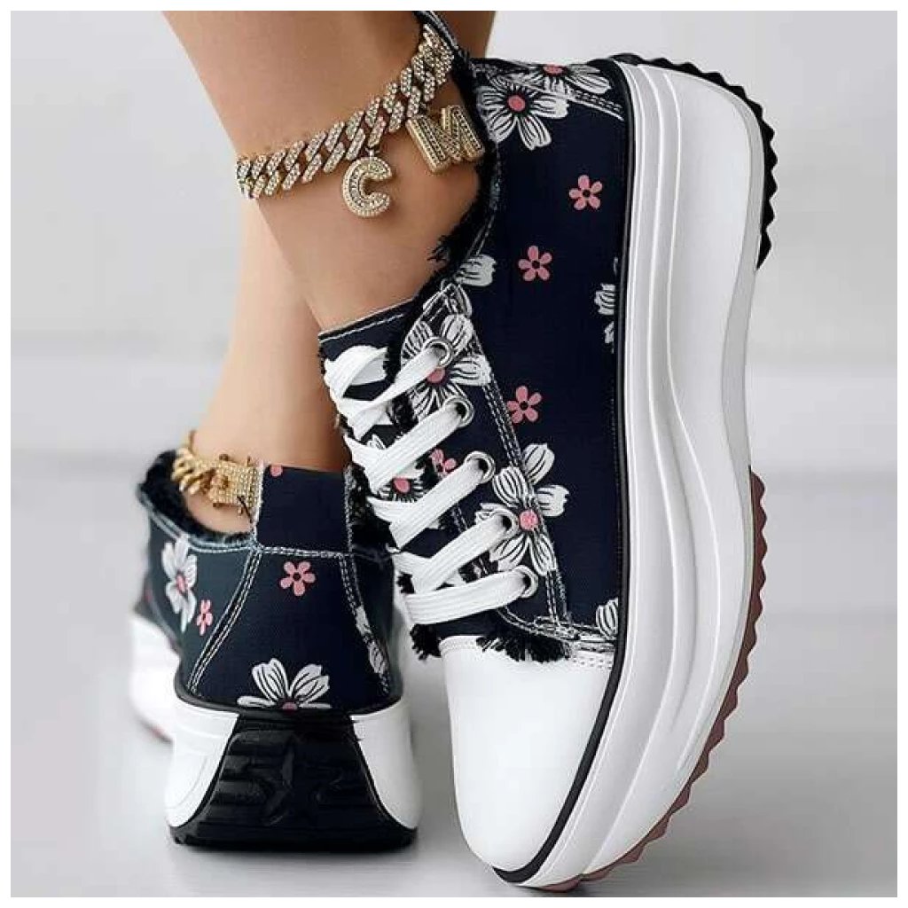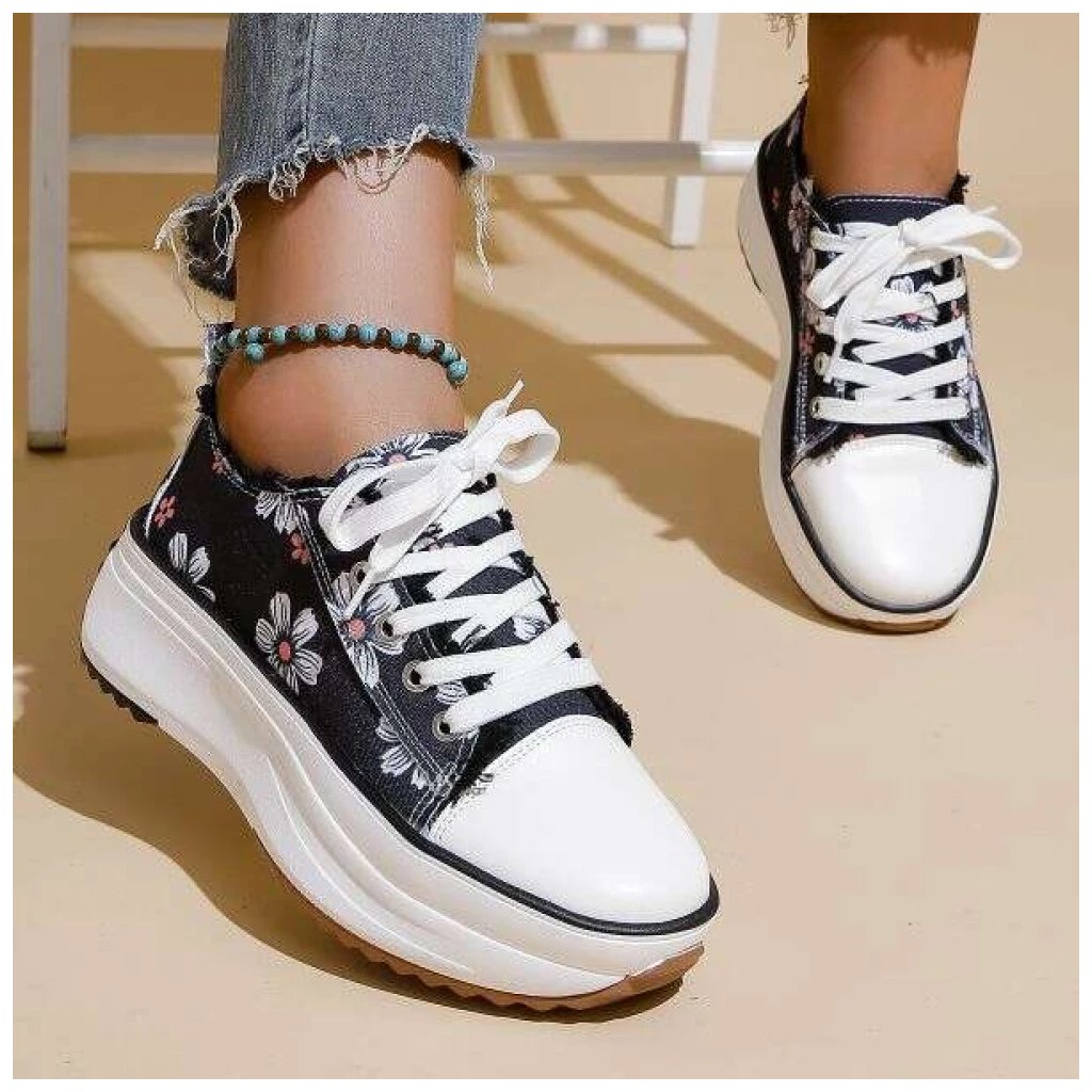 Modern platform tornacipők Jolene. Készüljön fel arra, hogy megtapasztalja a divat és a funkcionalitás tökéletes keverékét. A tornacipőket úgy tervezték, hogy szilárdan a talajon maradjon, bárhová is mész.. Érezze a kényelmet minden lépésében. Hihetetlenül tartós még a legnagyobb kihívást jelentő tevékenységek során is. Tapasztalja meg a stílus és a kényelem tökéletes ötvözetét élvonalbeli platformos tornacipőinkkel. Különféle tevékenységekhez megfelelő lábbeli. Akár a város utcáin sétál, akár fut, hogy elérje a buszt, vagy munkába induljon, stabilan és biztonságban lesz velük.. Tehermentes láb egész nap. Úgy tervezték, hogy masszívak legyenek, de könnyűek, mint a toll. A végső cél az, hogy a lábak kényelmetlenség nélkül érezzék magukat – reggeltől estig!. Okosan kialakított talp. Segítenek megőrizni az egyensúlyt minden lépésnél! A stabil, vastag platform lehetővé teszi a gyors, csúszásmentes gyaloglást még egyenetlen, csúszós terepen is.. Kiváló minőségű anyagok. Kizárólag a legjobb anyagok felhasználásával készült cipők tartósságot és ellenálló képességet ígérnek.. Anyagok: Felső - vászon; bélés - pamut; talpbetét - PU; talp - gumi. Méretek: 37, 38, 39, 40, 41. Szín: fekete-fehér virágokkal.Specifikációk:- Leírás: Jolene aranyos és kényelmes cipők. A tornacipőket a kényelem szem előtt tartásával tervezték, és különféle ruházattal párosíthatók. Megemelt talpuk van, ami megkönnyíti a járást. Fekete színben kaphatók.