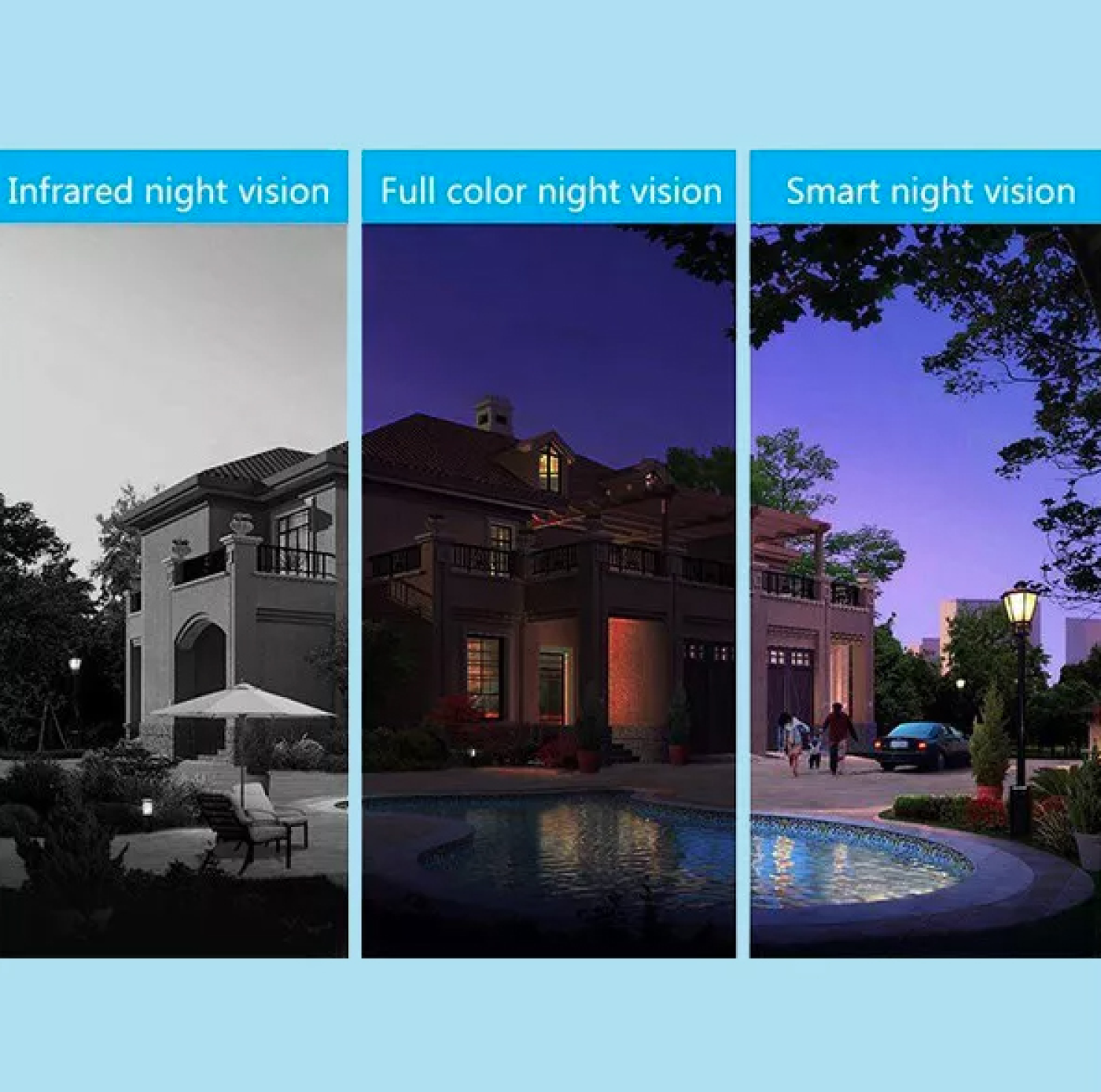 Két nagy teljesítményű fehér LED gondoskodik arról, hogy nem csak fekete-fehér, hanem színes, nappali minőségű felvételt is készíthessen sötétben, mozgás esetén automatikus világítással. Ez elriaszthatja a nem kívánt látogatókat is.