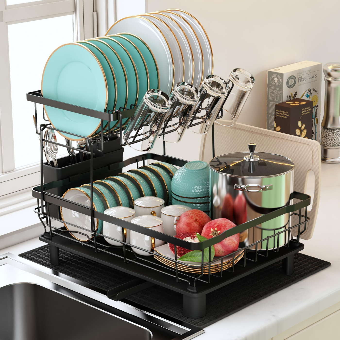 - Helytakarékos elrendezés – Az állvány konyhapultokon, sarkokban, ablakkeretekben vagy bármely más helyen elhelyezhető, így optimalizálja a tárolási lehetőségeket.