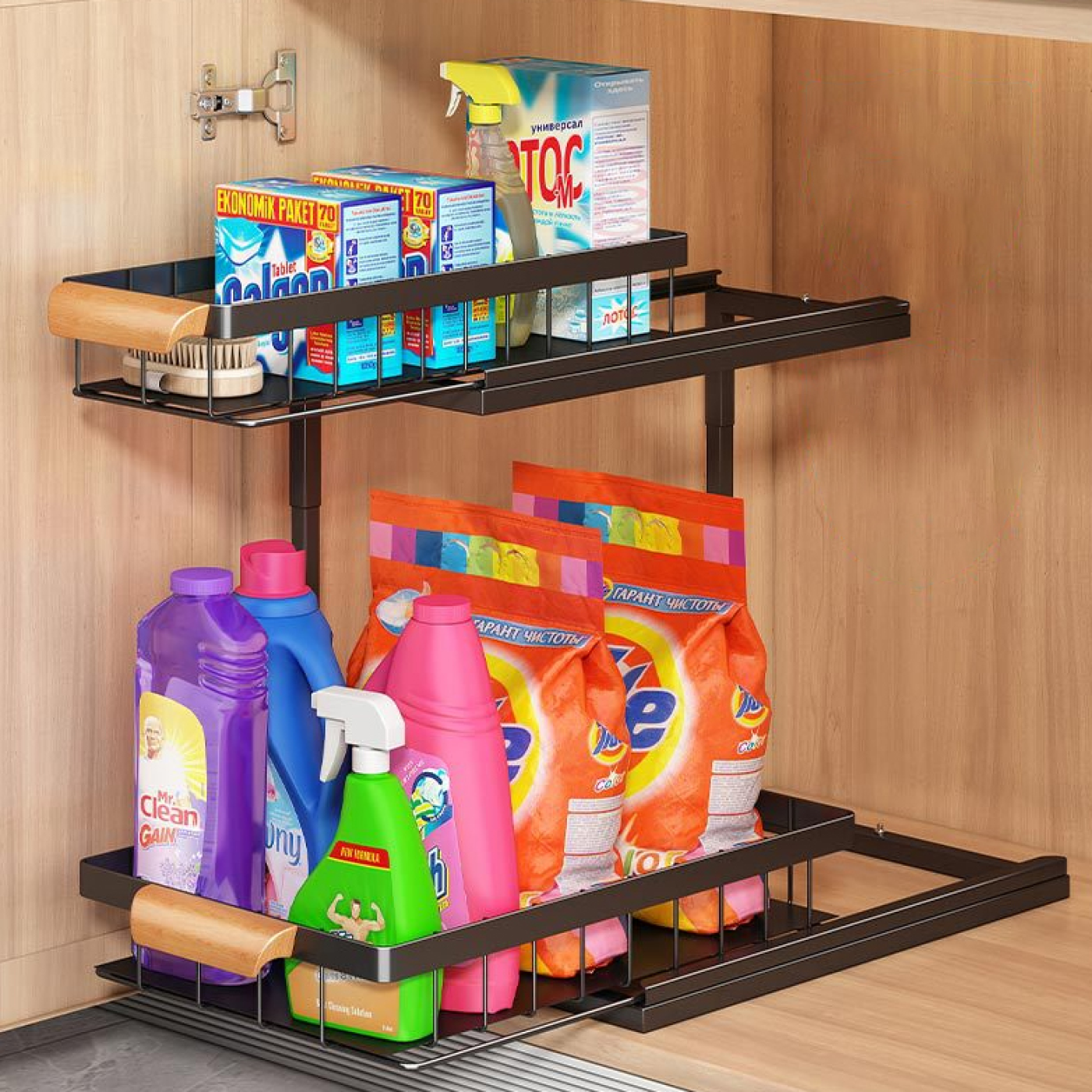 A multifunkciós kihúzható tárolókosár tökéletes választás azok számára, akik szeretnék hatékonyan kihasználni a konyhaszekrények vagy a mosogató alatti hely adottságait. Biztosítja a tisztítószerek, konyhai eszközök és egyéb háztartási cikkek átlátható és könnyen elérhető tárolását.
