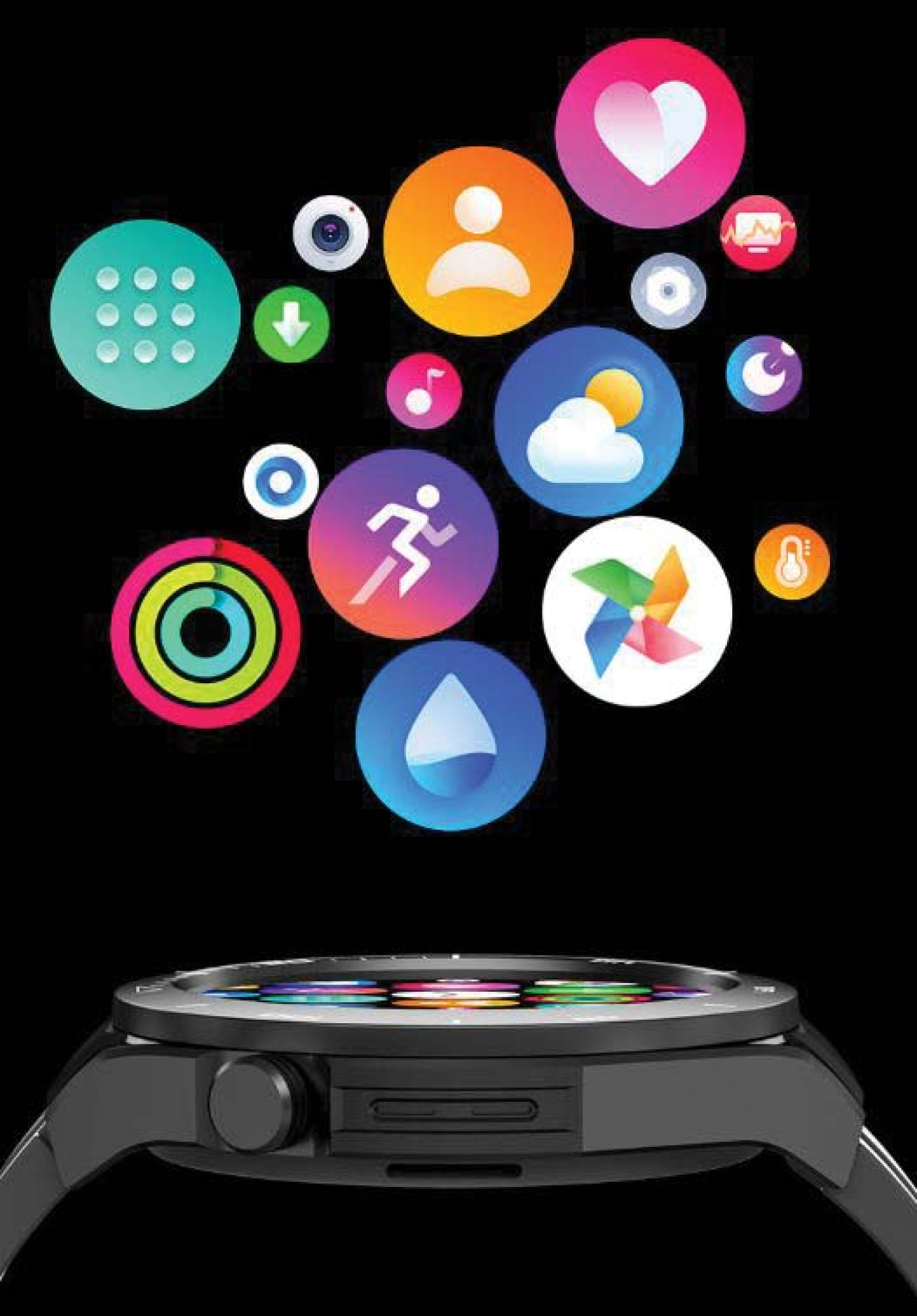 - Egészségfigyelő funkciók: Pulzusmérés, vérnyomás, véroxigénszint, EKG