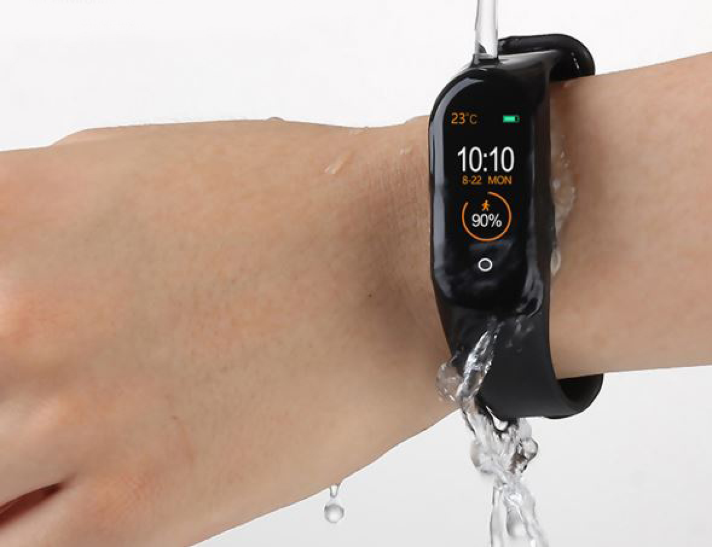 Az M4 okoskarkötő aktivitásméréssel, értesítésekkel, pulzusméréssel és IP67 vízállósággal, iOS és Android kompatibilitással, fekete színben.