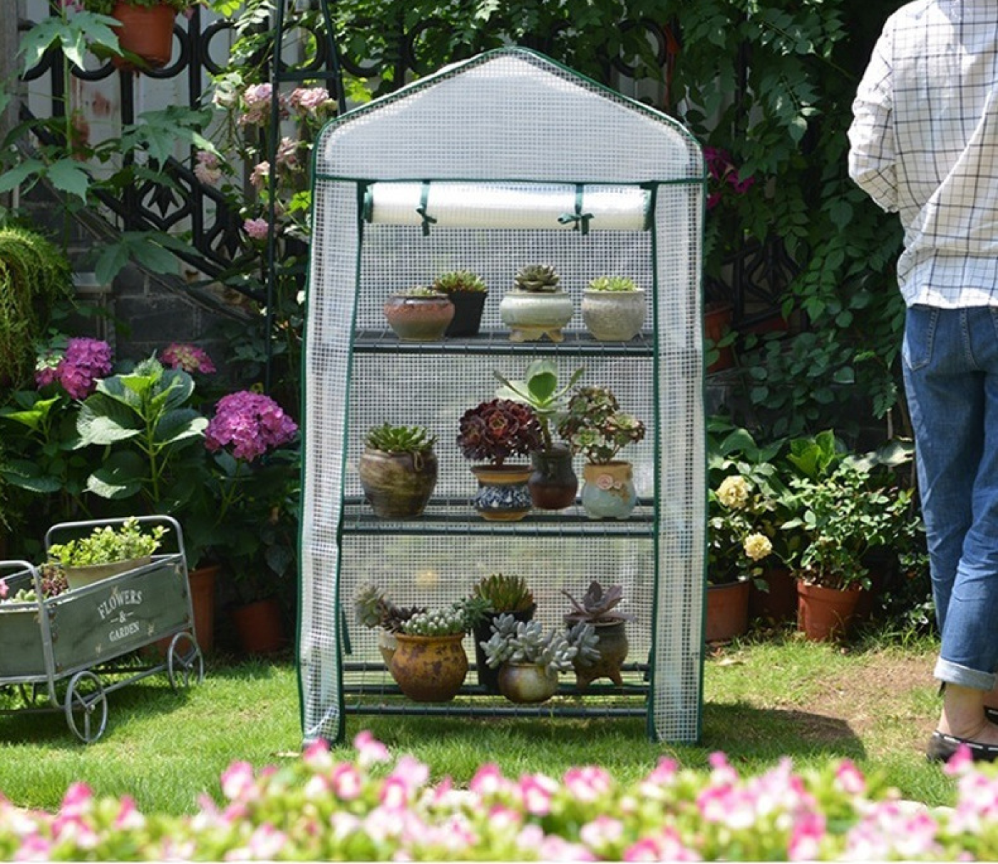 A mini mobil üvegház könnyen összeszerelhető, és nem igényel szakértelmet vagy különleges eszközöket. A melegház ajtaja cipzárral záródik, így biztosítva a növények védelmét a kártevőkkel és az időjárás viszontagságaival szemben.