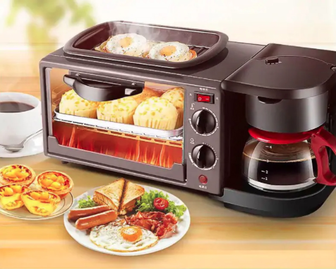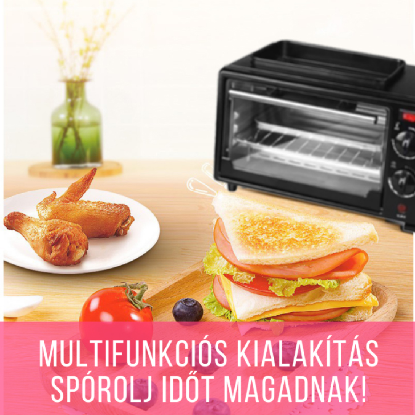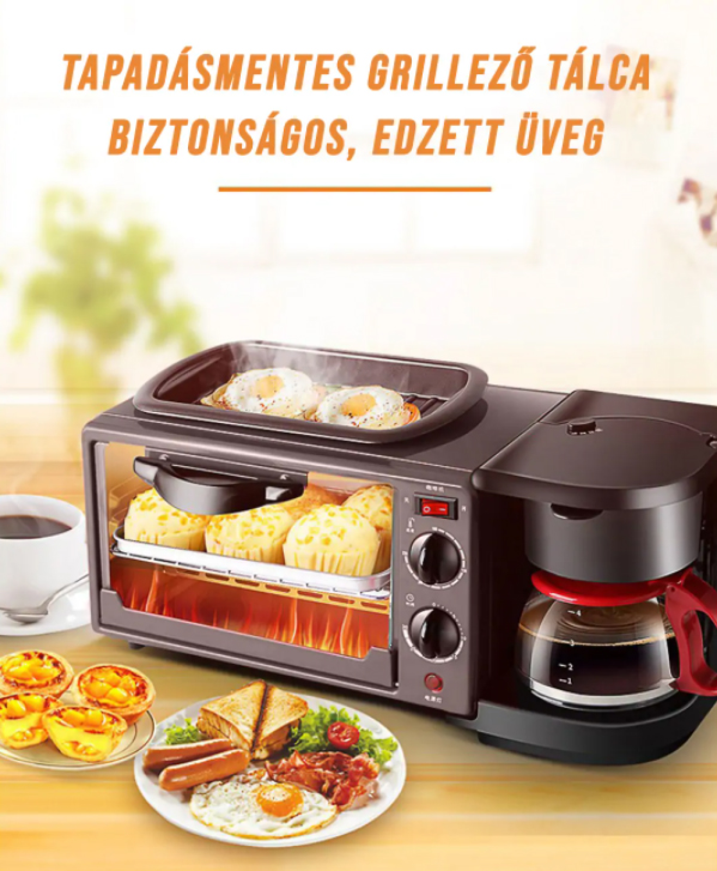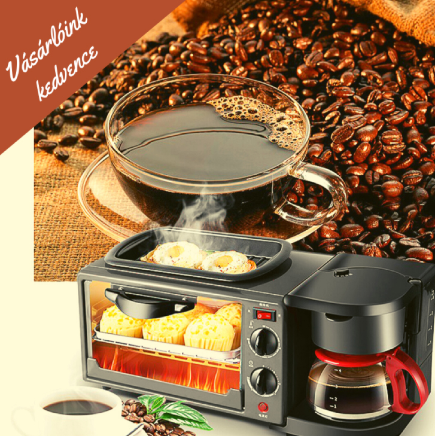Multifunkciós 3 in 1 reggeli készítő gép, grill funkcióval, kávéfőzővel, kenyérpirítóval