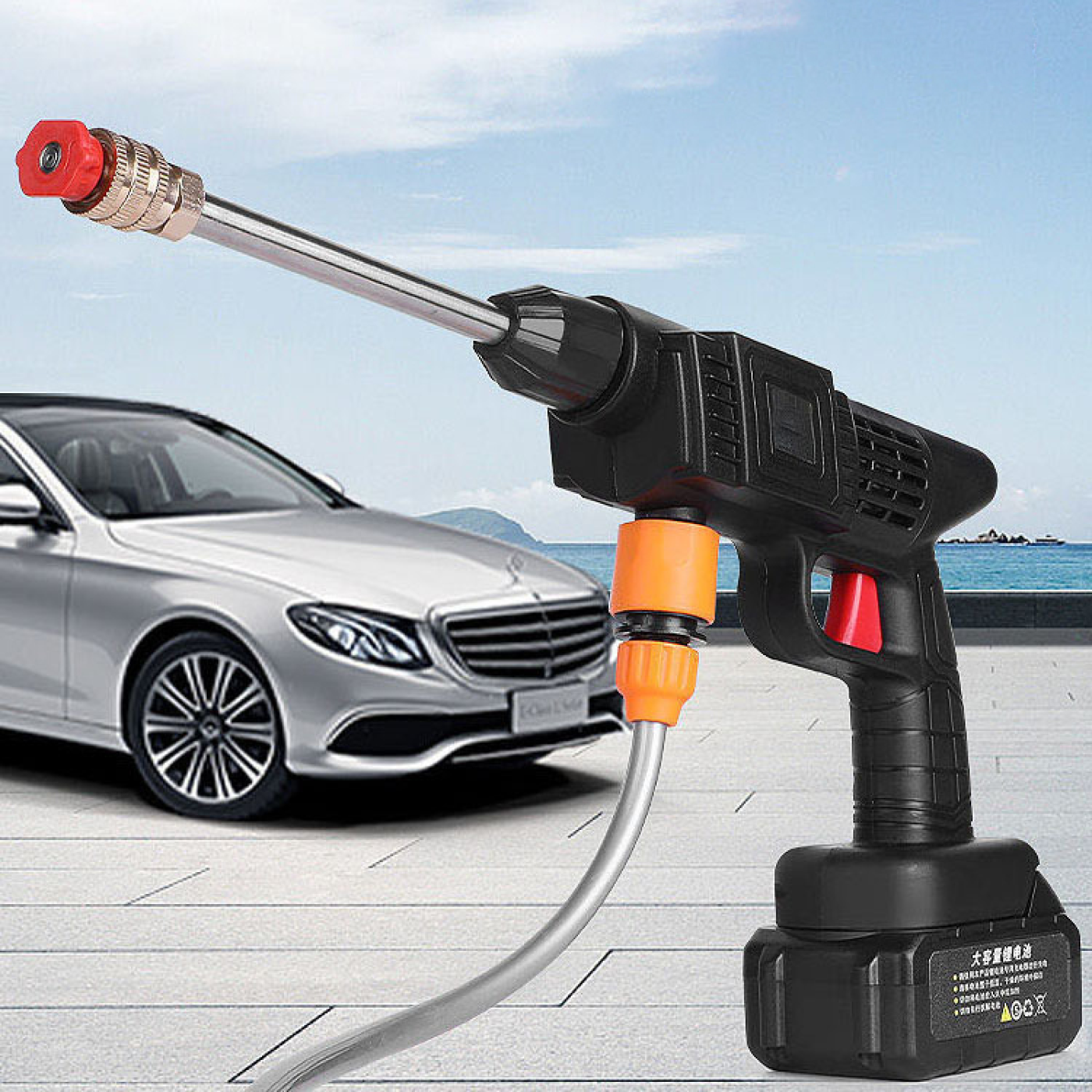 A maximális üzemi nyomás ezen a nagynyomású mosón 500 PSI/6,0 MPA, a maximális vízbemeneti nyomás pedig 1 MPA, a vízáramlás sebessége pedig 300 l/h. Ez a hordozható nagynyomású mosó egy 24V-os lítium akkumulátorral rendelkezik, ami nagy teljesítményt nyújt. Vezeték nélküli, könnyű és kompakt kialakításának köszönhetően bárhová magával viheti. Autók, teherautók, motorkerékpárok, felhajtók, kerítések és kerékpárok néhány perc alatt megtisztíthatók ezzel a magasnyomású mosóval.
