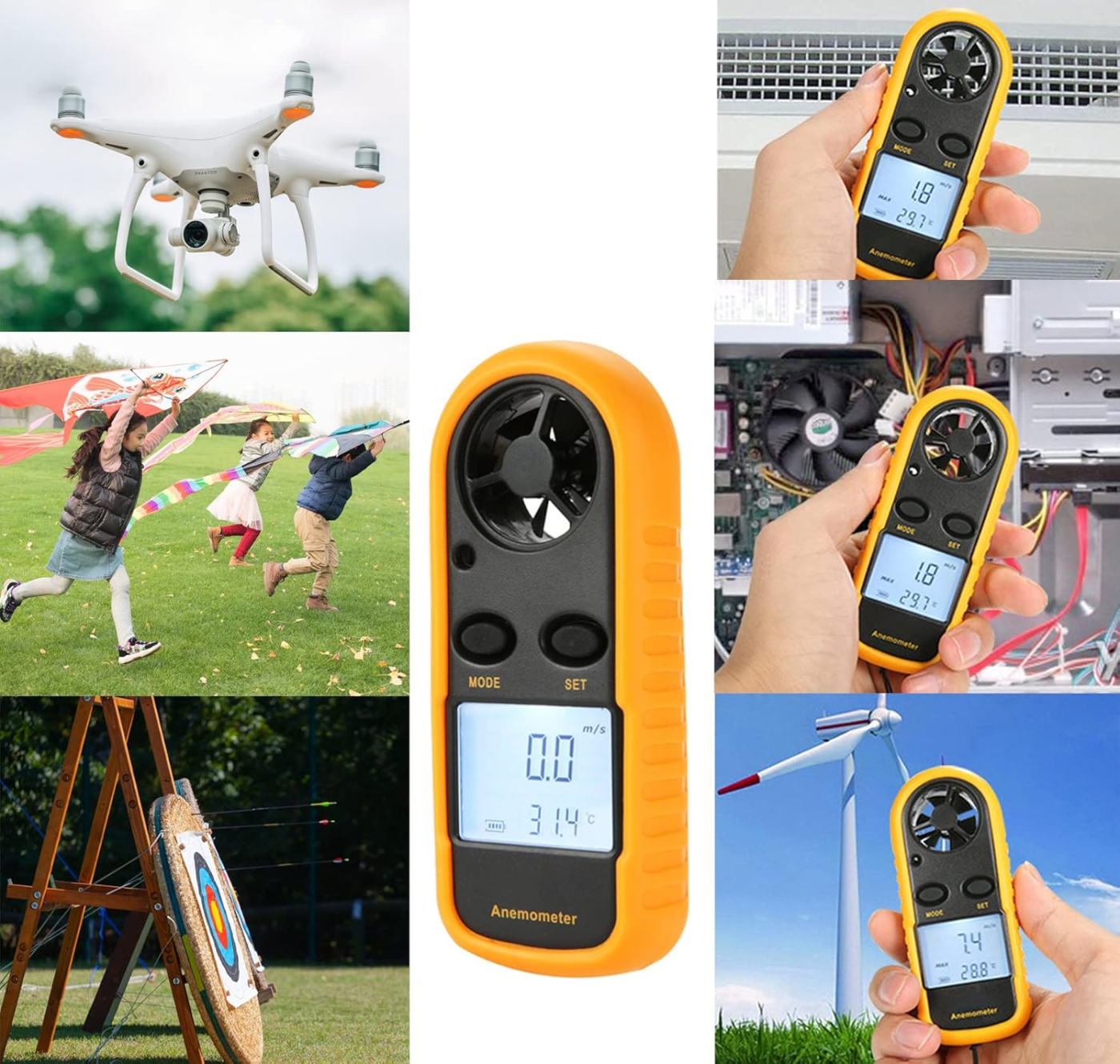 Sokoldalú felhasználás: A digitális szélsebességmérő tökéletes eszköz HVAC rendszerek, légkondicionálók, számítógépes hűtőrendszerek és ipari ventilátorok szellőzési sebességének mérésére. Emellett ideális vitorlázáshoz, lövészethez, sárkányeregetéshez, drónhasználathoz és egyéb szabadidős vagy ipari felhasználási területekre.