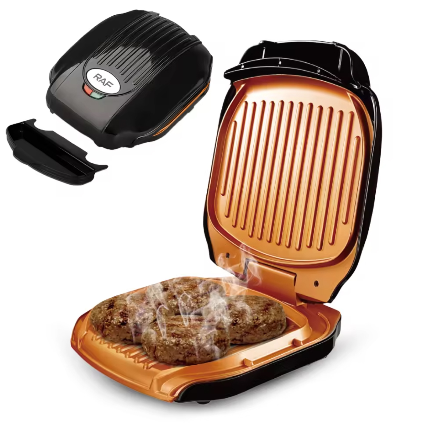 A RAF kontakt grill egy kényelmes, funkcionális eszköz, amely segít gyorsan és egyszerűen elkészíteni ízletes és kifinomult ételeket mindkét oldalról. A modern, stílusos kialakítású készülék maximálisan biztonságos, és elegendő 1200 W teljesítménnyel rendelkezik.
