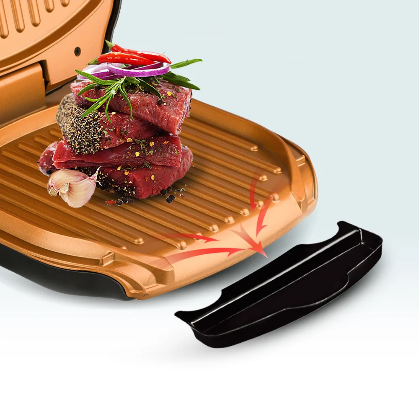 A gyors felfűtés speciális technológiája egyenletes hőelosztást biztosít a felületen, így az ételek néhány perc alatt elkészülnek, miközben a készülékház nem melegszik fel.