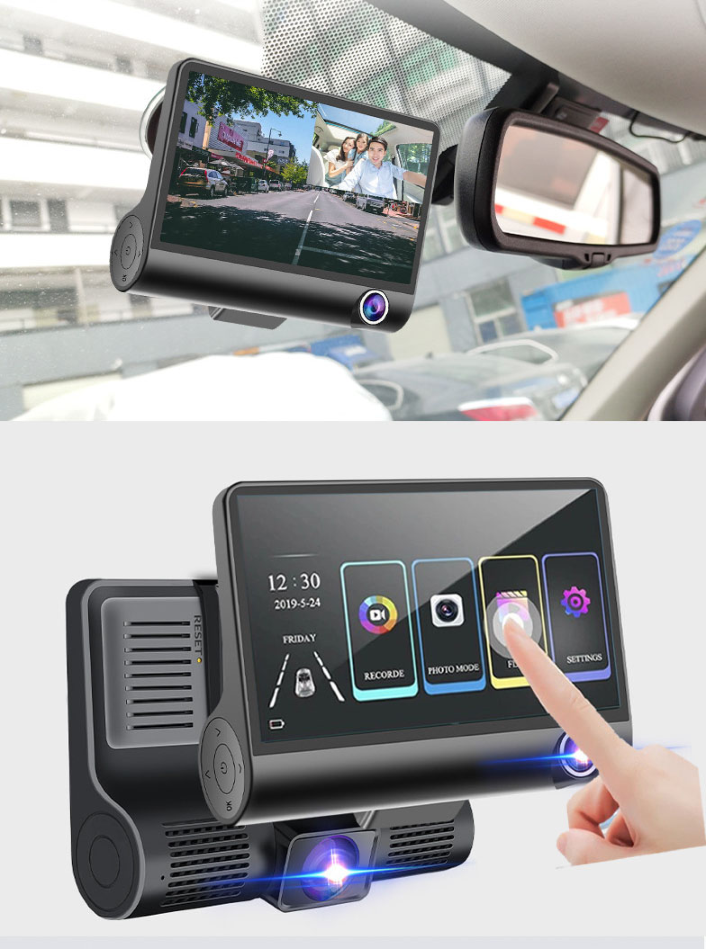REC 504 Érintőkijelzős Autós menetrögzítő kamera tolatókamerával,utastér rögzítéssel