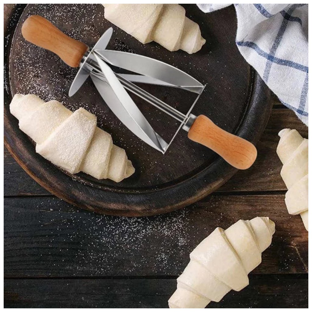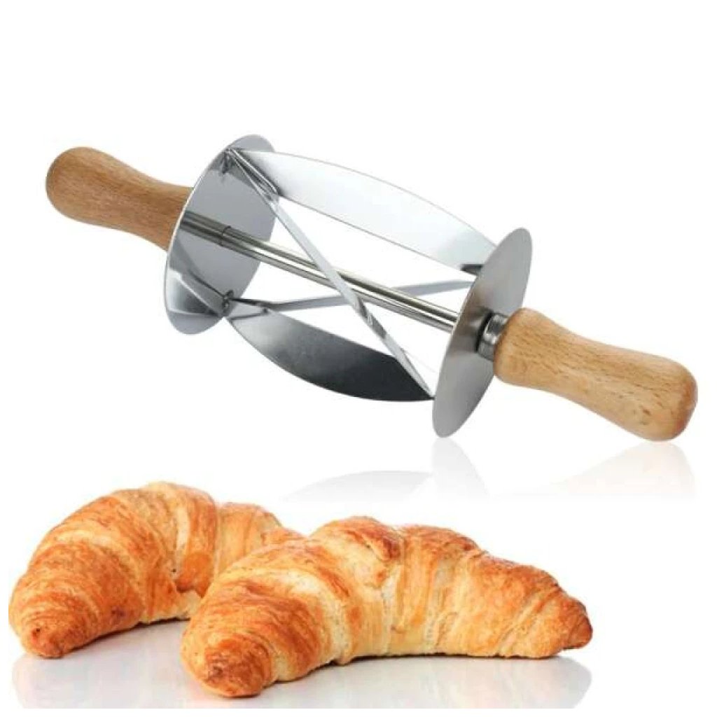 tészta vágó, háromszög formázó, croissant készítés, konyhai eszköz, rozsdamentes acél, kifli, sütemény, praktikus, fa nyél, cukrászda