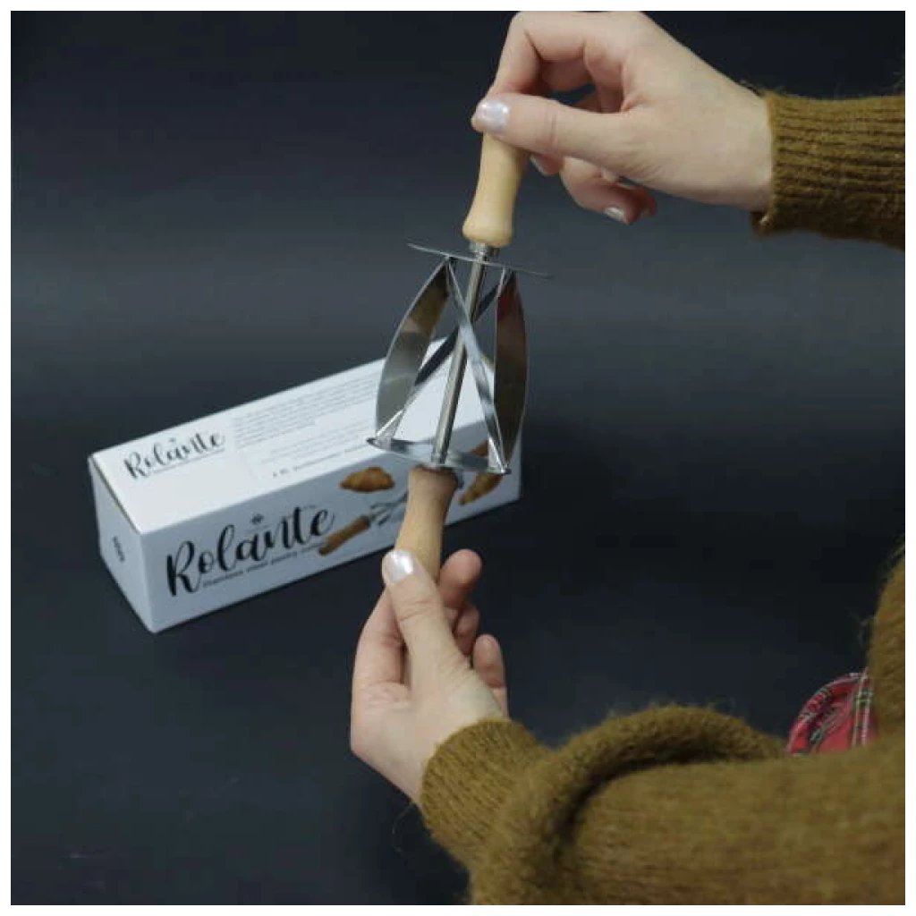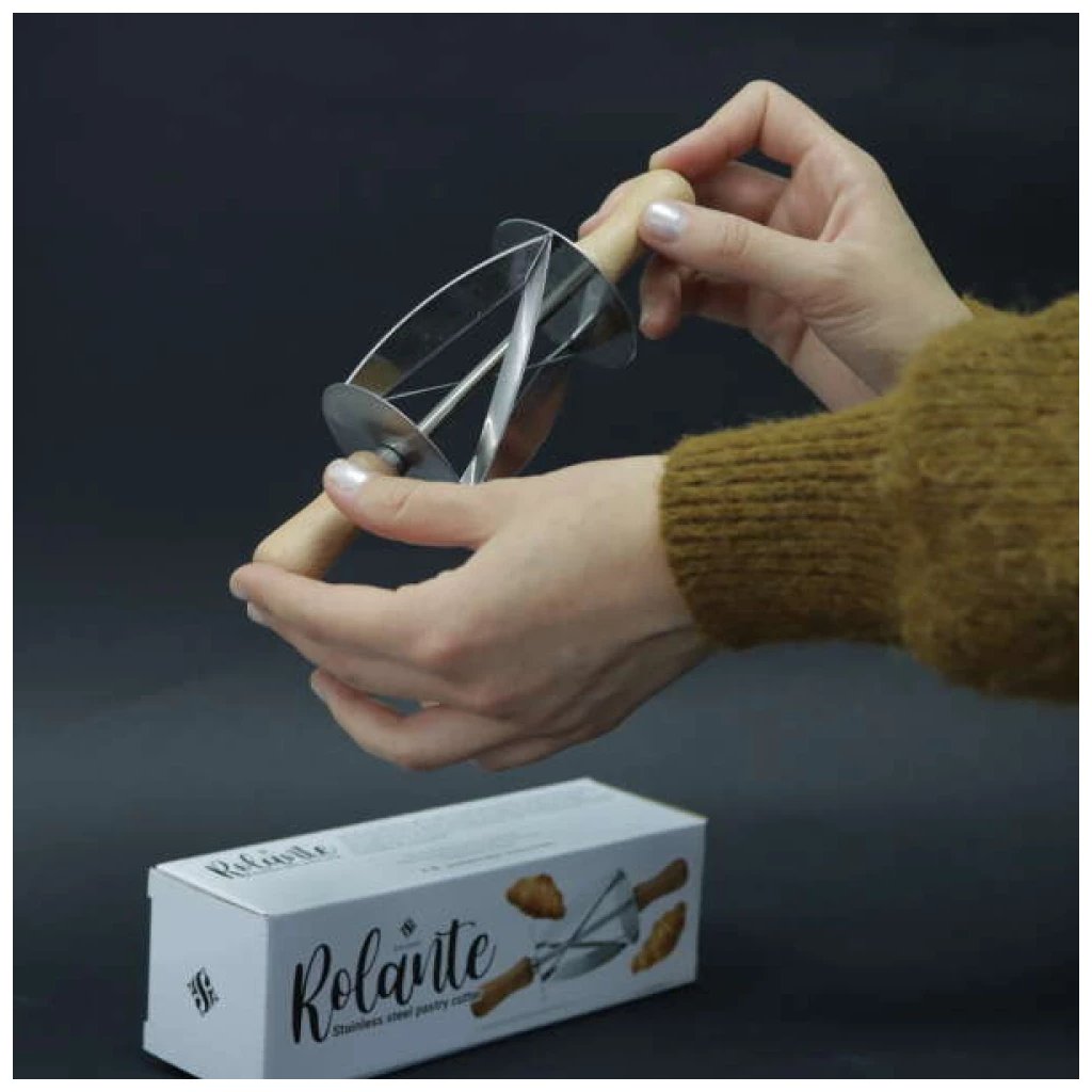 A Rolante tészta vágóval időt és energiát spórolhat meg a konyhában. Egyetlen mozdulattal tökéletes háromszögeket vághat ki a tésztából, így minden alkalommal egyforma croissant-okat, kifliket, teasüteményeket és egyéb péksüteményeket készíthet. A kiváló minőségű rozsdamentes acél vágófej és a kényelmes fa nyél gondoskodik a tartósságról, miközben kíméli a konyhai felületeket. Nincs szükség más eszközökre vagy kiegészítőkre – a Rolante mindent megold, és csökkenti a rendetlenséget a konyhában. Használata egyszerű: csak nyújtsa ki a tésztát a kívánt vastagságra, majd húzza végig a vágót. Gyorsabban készíthet tökéletes méretű és alakú süteményeket, így több idő marad a sütés igazi örömére. Ez a praktikus konyhai eszköz nem játék, gyermekek csak felnőtt felügyelete mellett használhatják. Tisztítása egyszerű, elég egy nedves ruhával áttörölni.