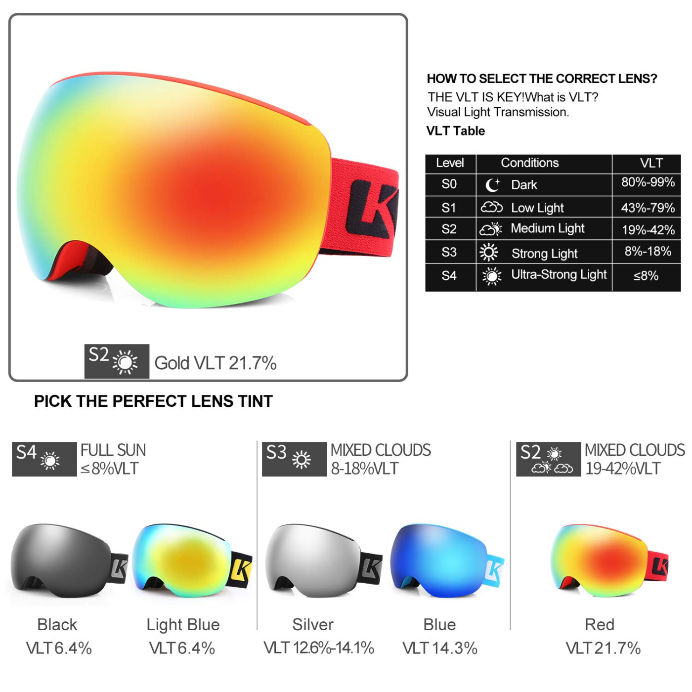 Páramentes bevonatú dupla lencse és UV400 védelem: a külső lencse erős anyagból készül, és karcolásálló bevonattal rendelkezik, amely javítja a lencse karcolásállóságát. A síszemüveg belső oldalán páramentes bevonat található, így a szemüveg nem párásodik be, és hosszantartó páramentes hatást biztosít. Az összes lencsén UV400 védelmi bevonat van, amely tisztábbá és lágyabbá teszi a látványt, és tökéletesen védi a szemet.