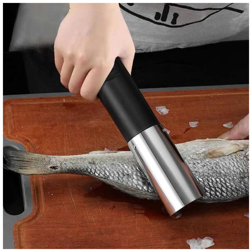 halpikkelyező, konyhai eszköz, elektromos pikkelyező, hal tisztítás, profi konyhai eszköz, rozsdamentes acél, halpucoló, halkészítés, pikkely eltávolító, konyhai segédeszköz
