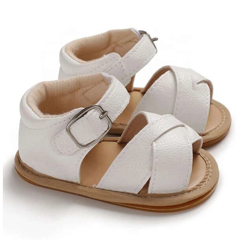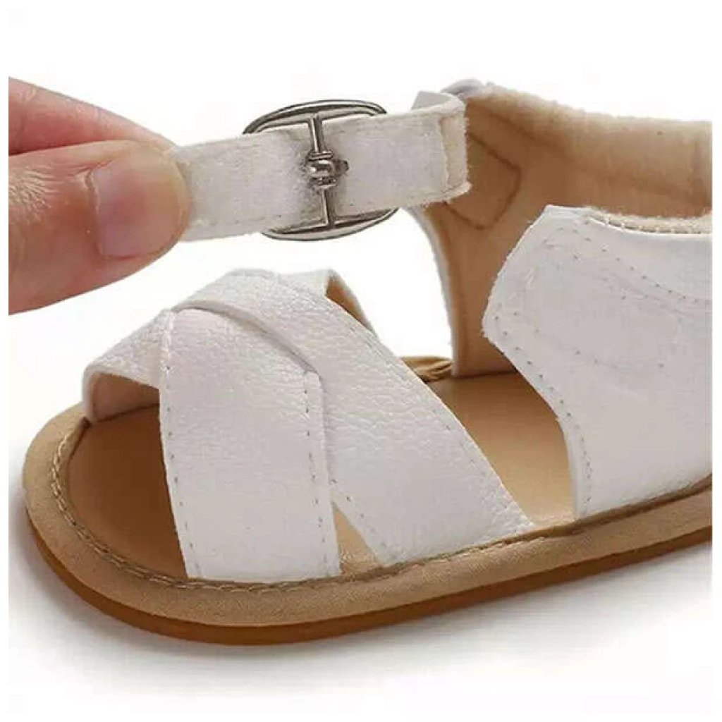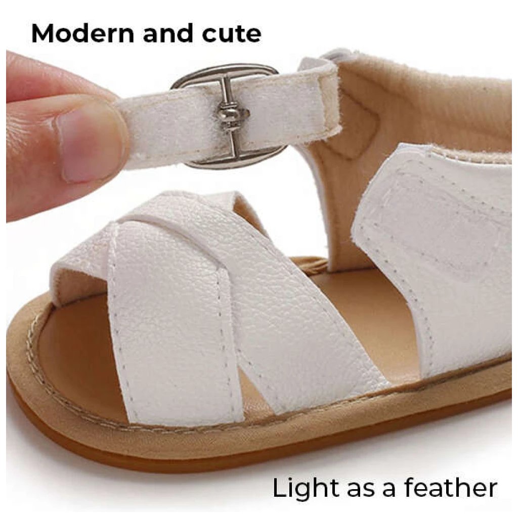 baba szandál, gyermekszandál, eco bőr, puha talp, tépőzár, csúszásgátló, csecsemő cipő, első lépések, fekete szandál, fehér szandál