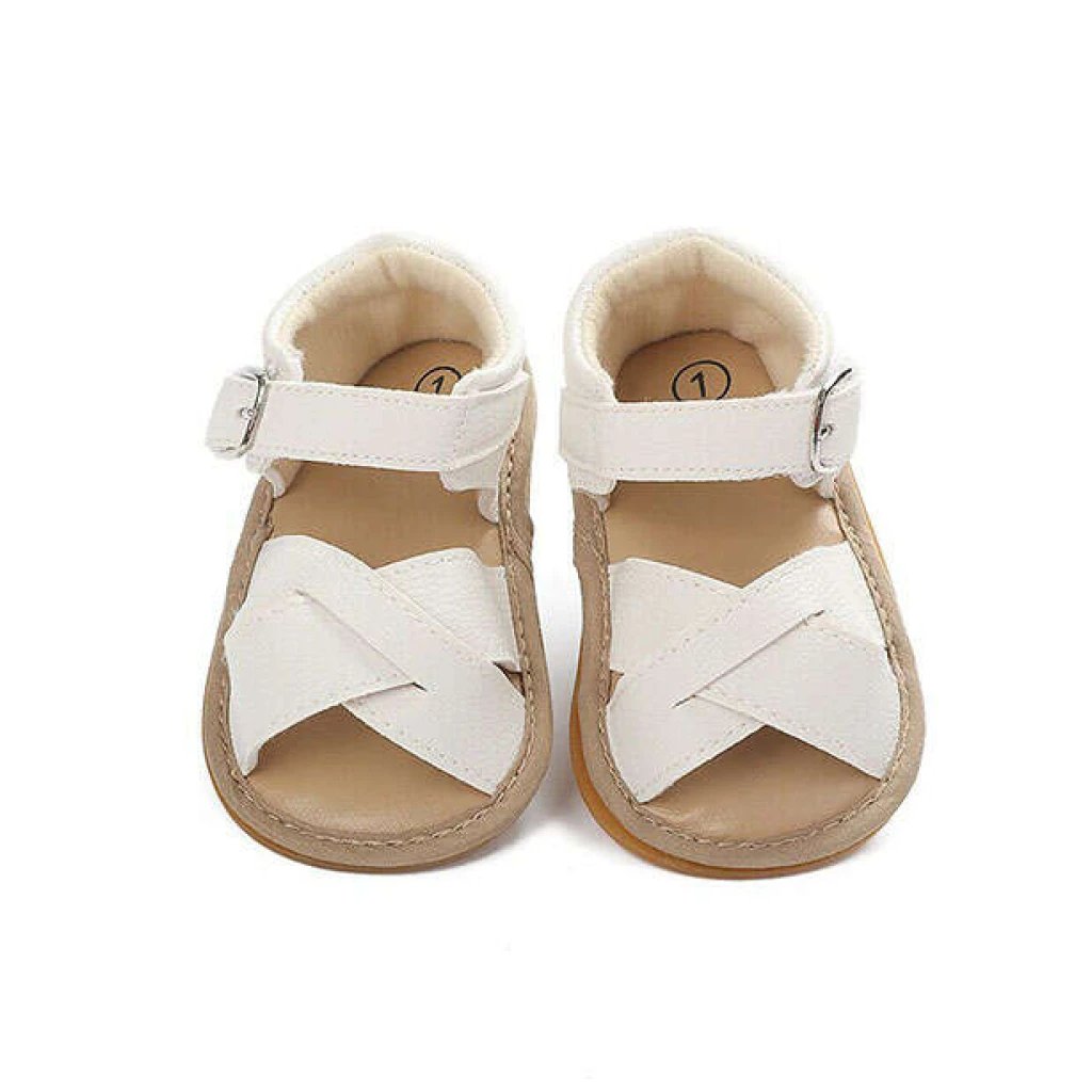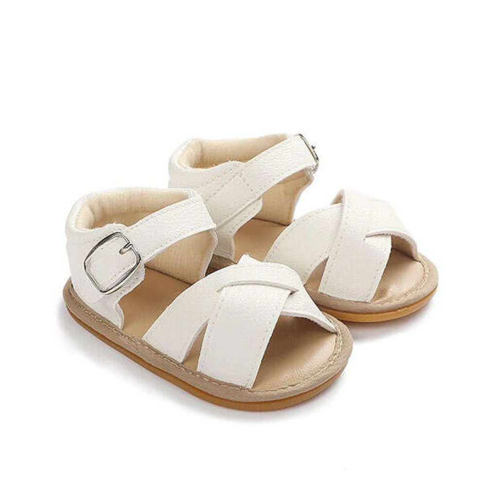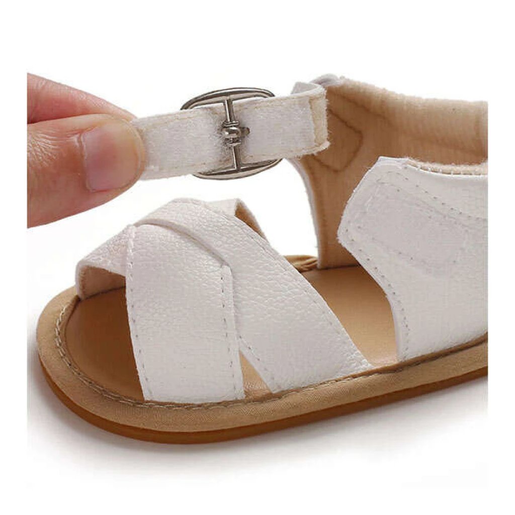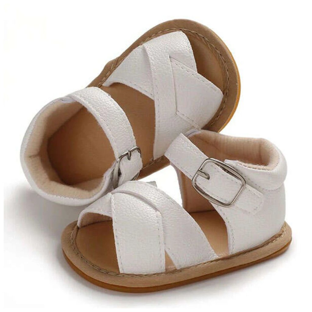 baba szandál, gyermekszandál, eco bőr, puha talp, tépőzár, csúszásgátló, csecsemő cipő, első lépések, fekete szandál, fehér szandál