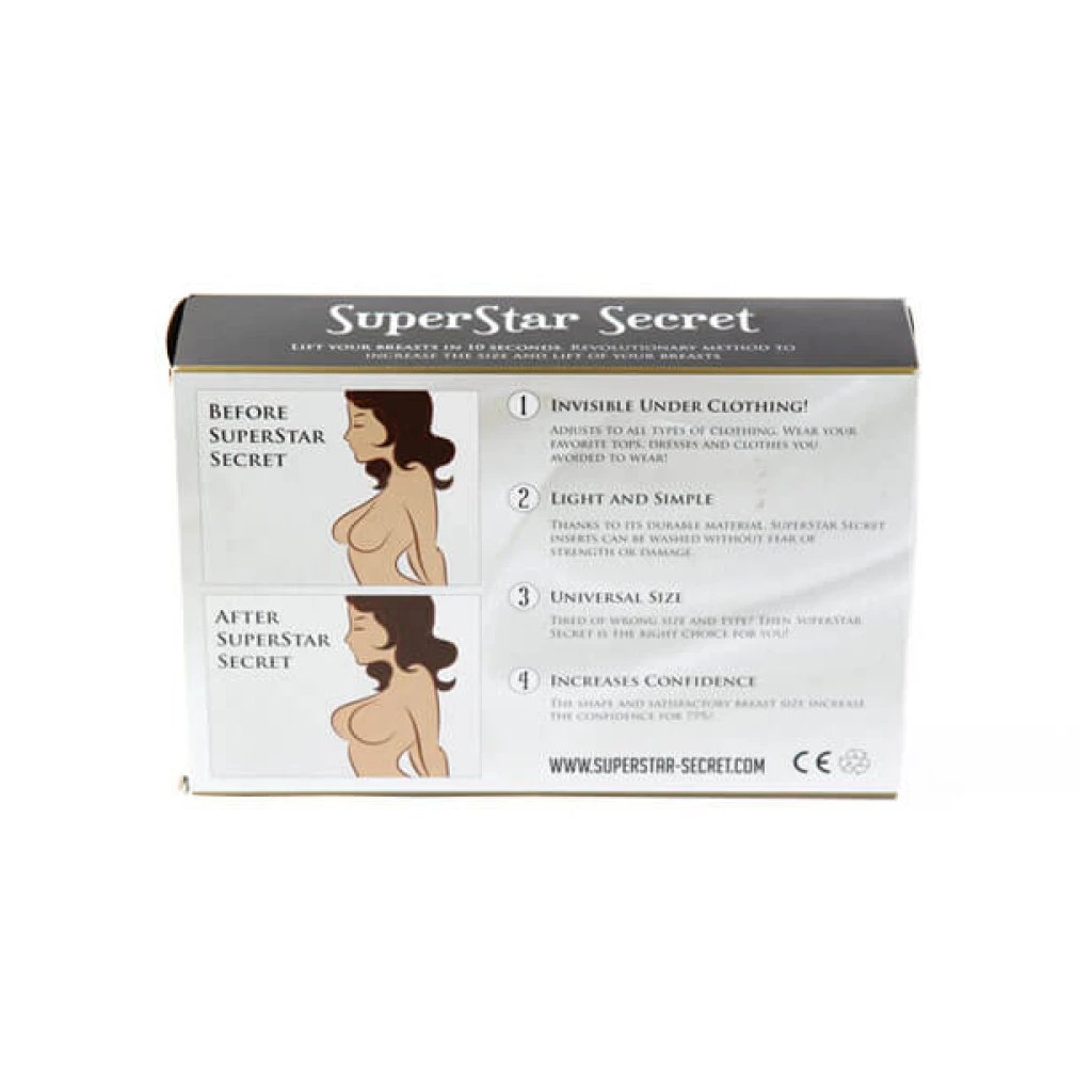 SuperStar Secret egy praktikus megoldás azoknak, akik műtét nélkül szeretnének nagyobb, formásabb melleket. A használata egyszerű és gyors, mindössze 10 percet vesz igénybe. A termék kényelmes viseletet biztosít, nem igényel beavatkozást vagy hosszabb felépülési időt. Ideális választás mindennapi használatra, vagy különleges alkalmakra, amikor azonnali hatásra van szükség. Diszkréten viselhető, ruházat alatt nem látható. Próbálja ki a SuperStar Secretet, és élvezze a magabiztosabb megjelenést egyszerűen és biztonságosan!