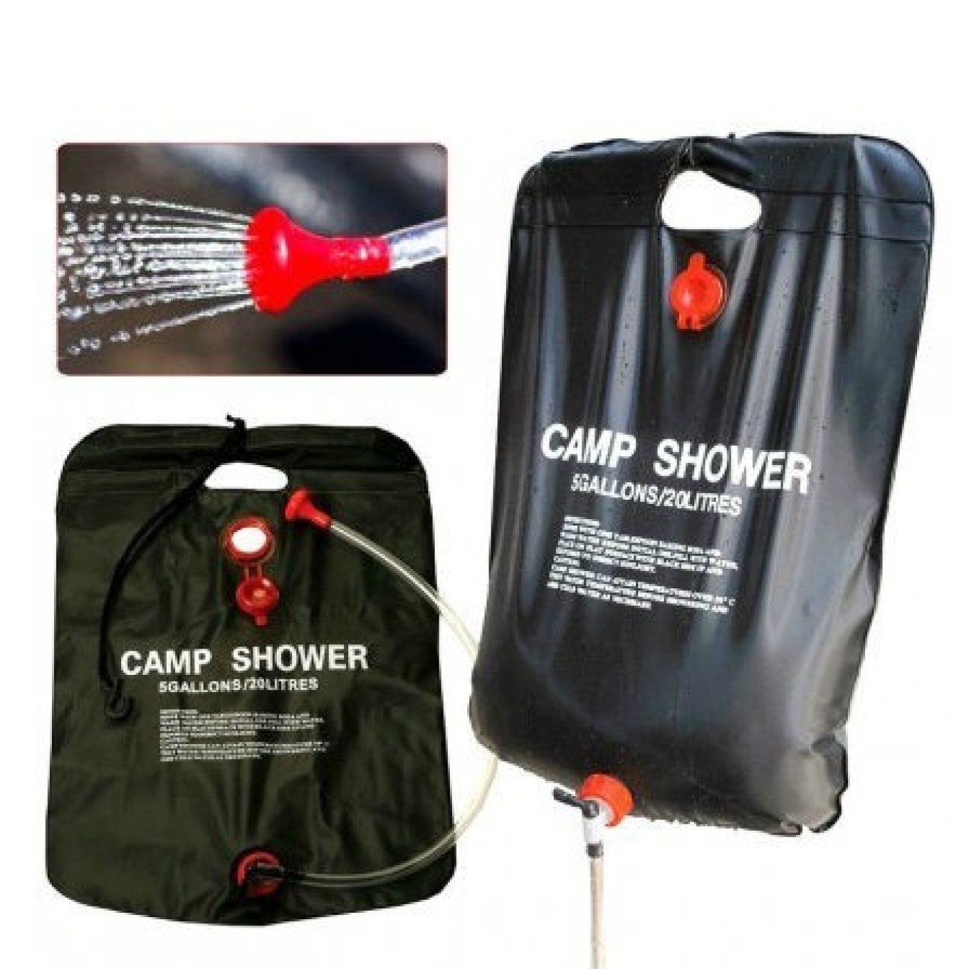 Anyagának köszönhetően a benne lévő víz a napfény hatására, 2-3 óra alatt 50 fokosra is fel tud melegedni. A 20 liter 3-4 embernek elegendő vizet biztosít a zuhanyzáshoz. Összehajtva akár hátizsákban is elfér.
