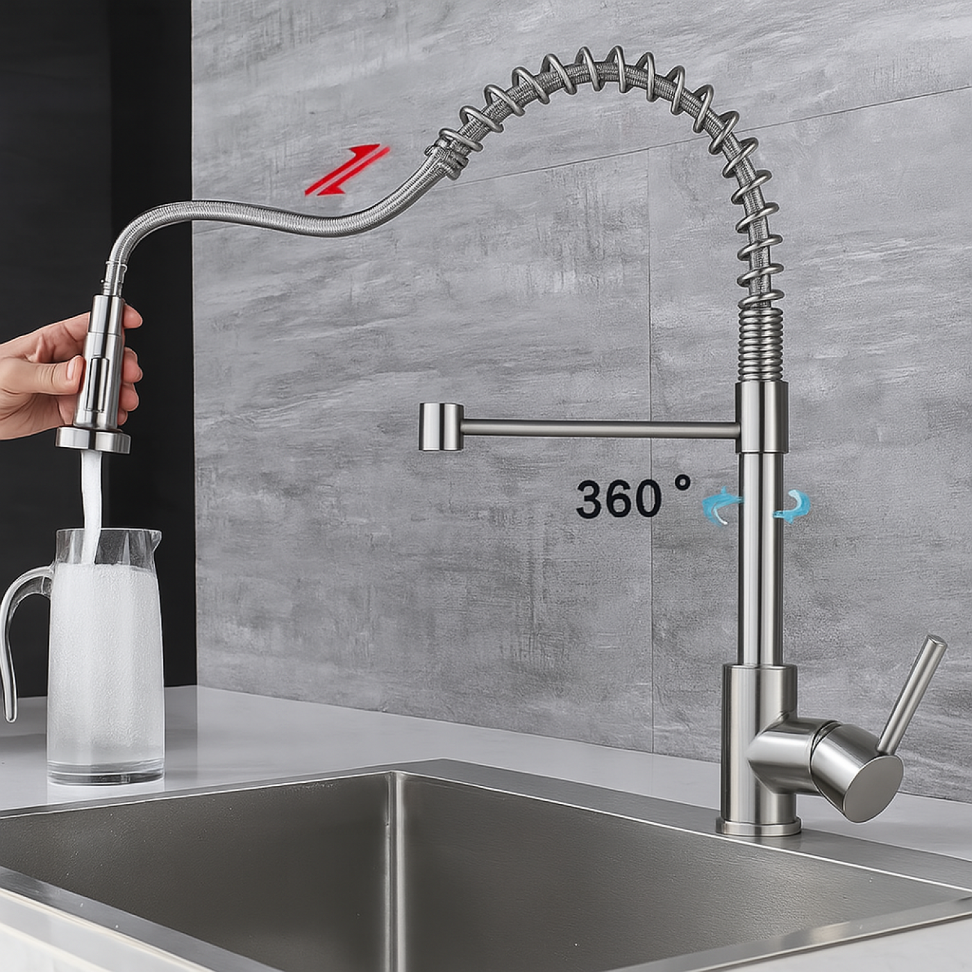 Ez a teleszkópos konyhai csaptelep ideális választás a modern konyhákba, ahol a praktikum és a dizájn egyaránt fontos. A kihúzható zuhanyfejnek és a rugalmas, spirálrugós tömlőnek köszönhetően a csap rendkívül sokoldalúan használható – legyen szó zöldségek öblítéséről, edények mosásáról vagy a mosogató tisztításáról.