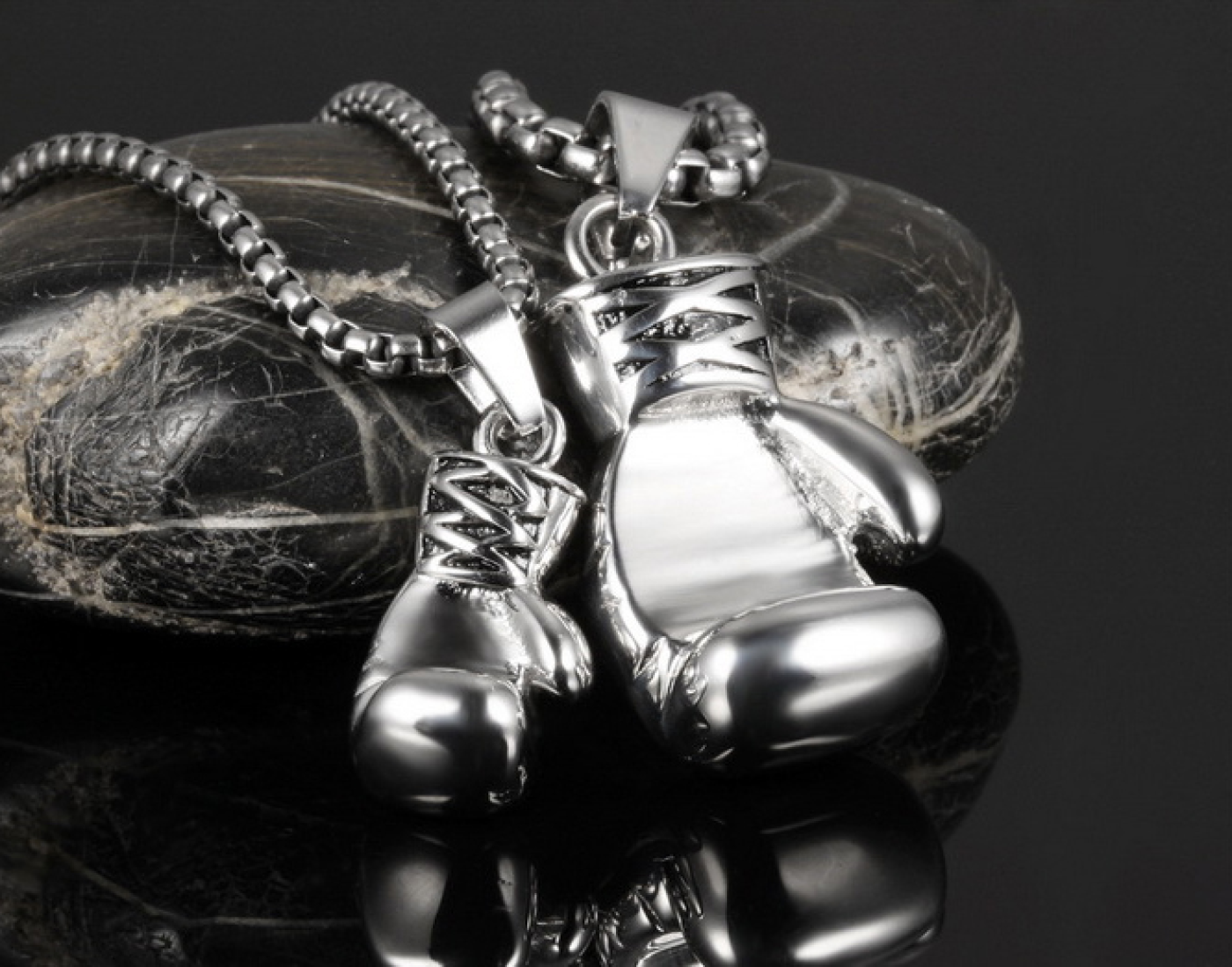 Ezüst színű medál nyaklánccal. A kifinomult medál egy gyönyörű ajándék a boksz- és a harcművészetek szerelmeseinek.