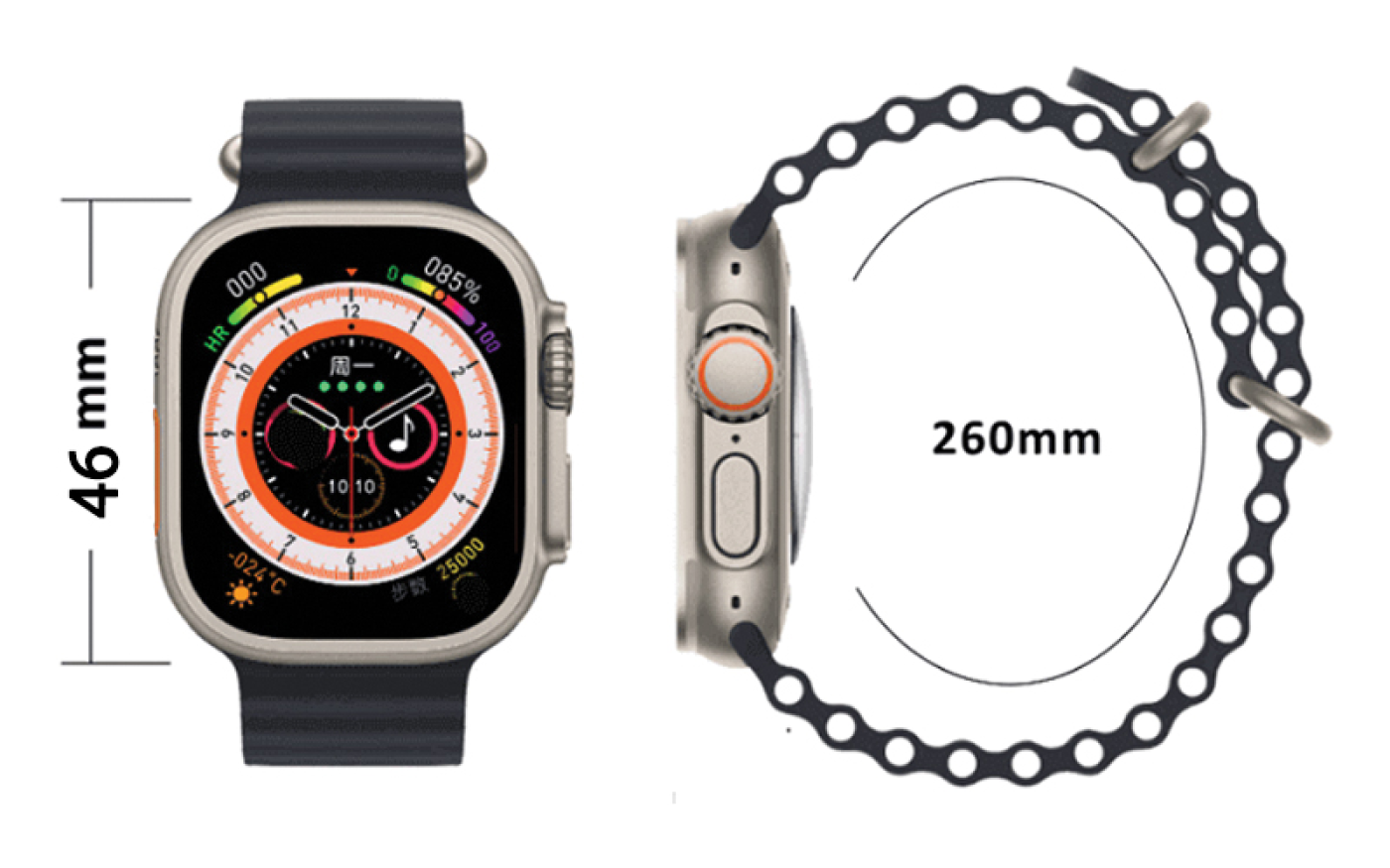 A kijelzőről: Ez az Ultra okosóra 1.8 hüvelykes nagyméretű, 2,5D üveggel ívelt IPS érintőképernyővel rendelkezik, és 400*417 pixeles felbontással készült.